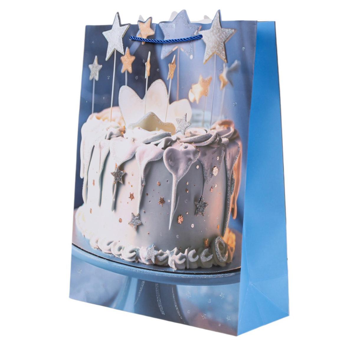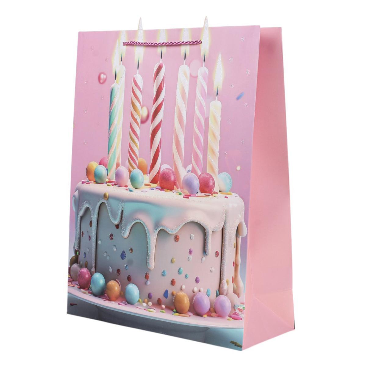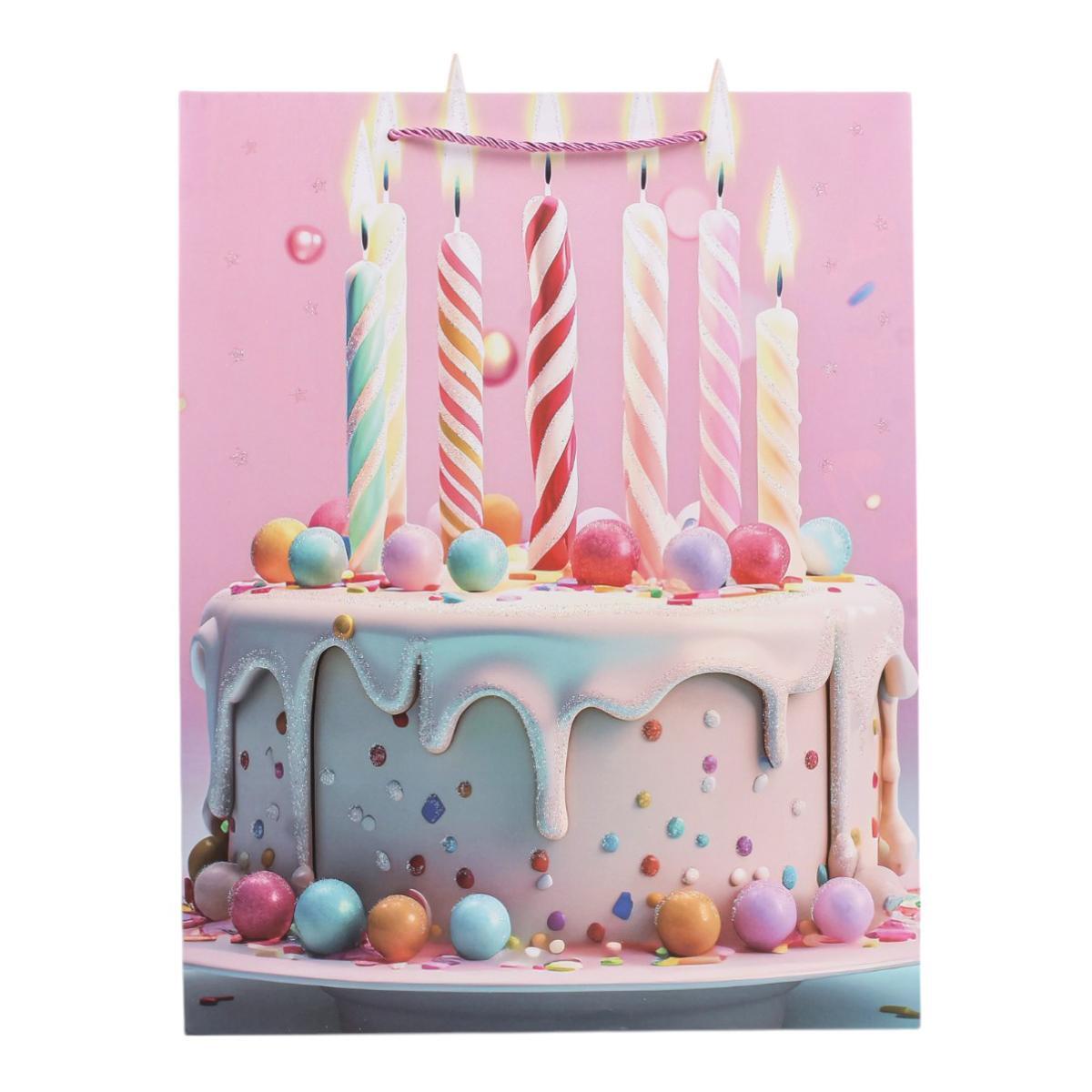 Просто поместите подарок во внутренний отсек и затяните декоративные шнурки — презент готов к вручению! Каждый дизайн представляет отдельную тематику: от нежных пастельных тортов до ярких композиций с золотыми акцентами. Особенная фактура поверхности с тиснением создает эффект дорогой подарочной бумаги.