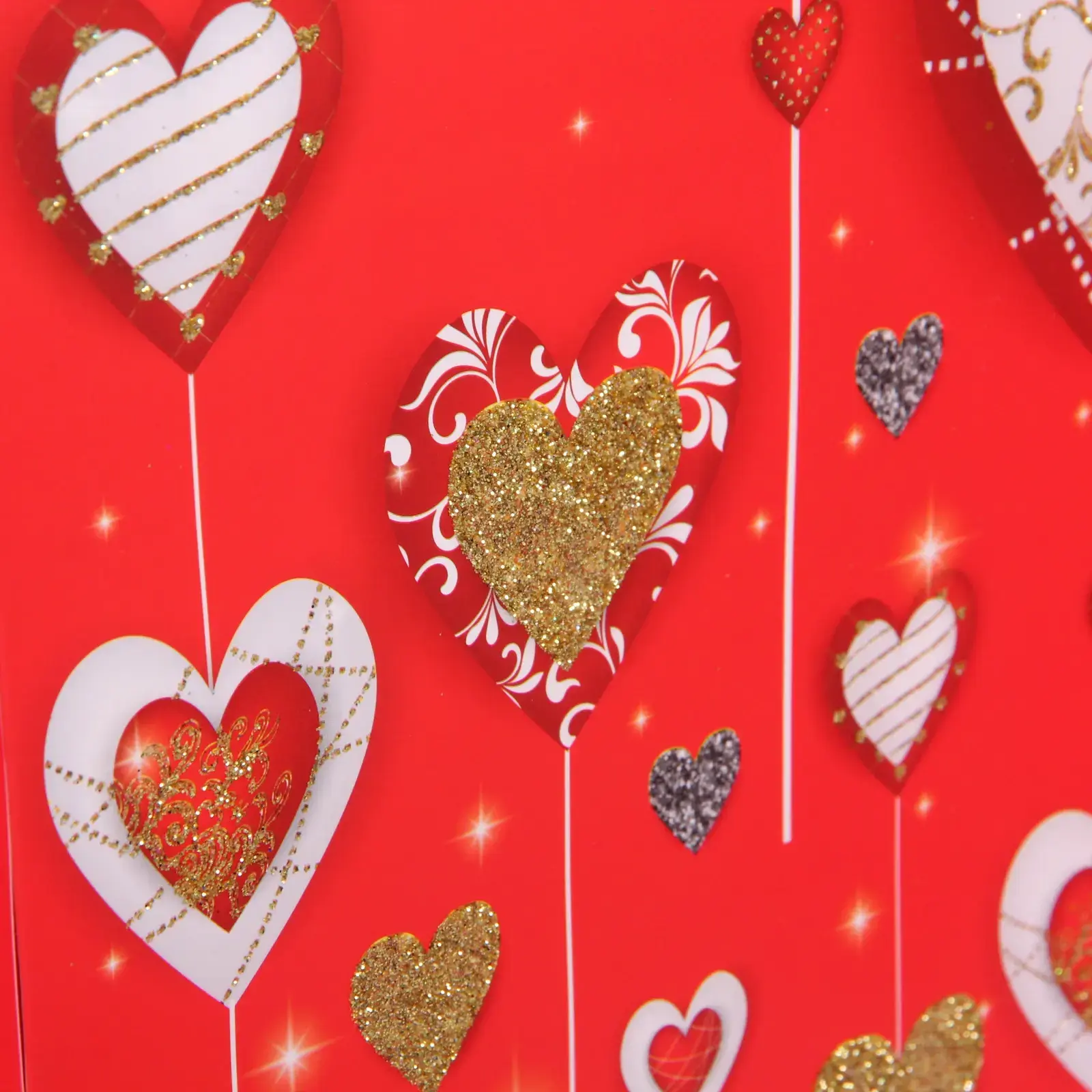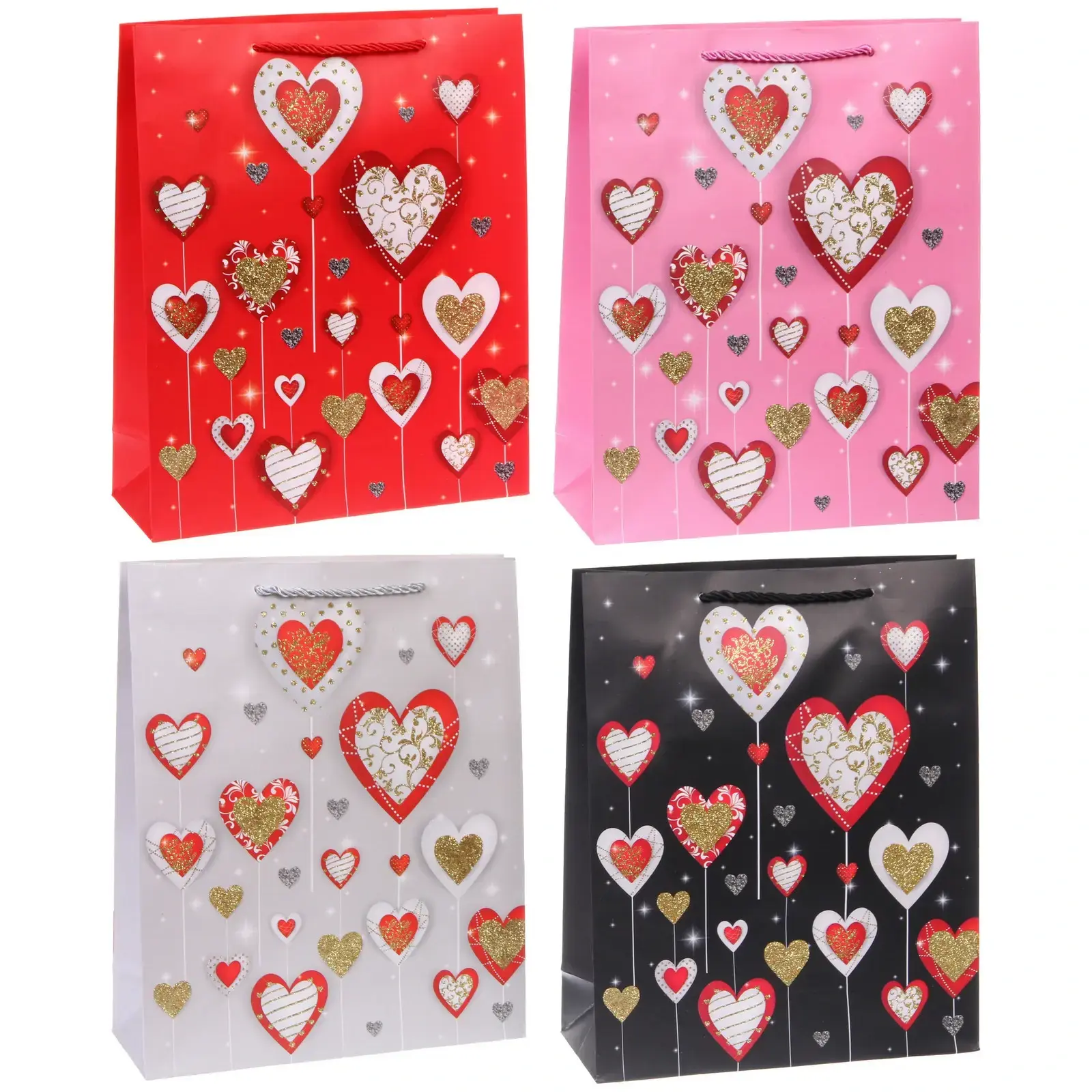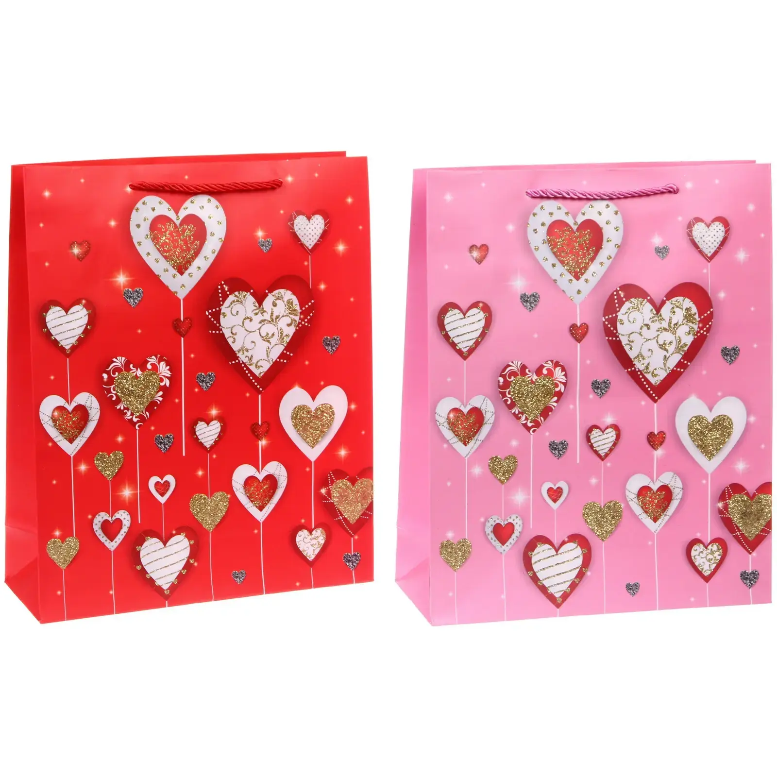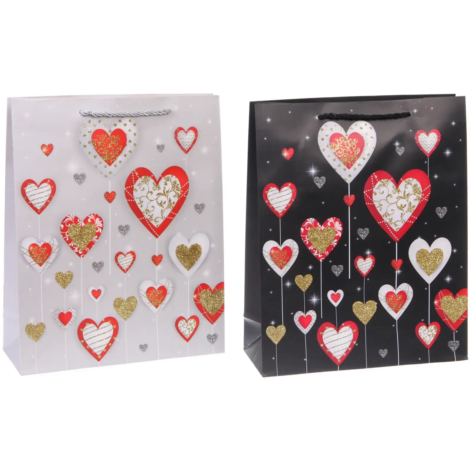 Размеры пакета составляют 26 см в ширину, 32 см в высоту и 10 см в глубину. Он доступен в миксе цветов, включая красный, розовый, белый и черный, что позволяет выбрать наиболее подходящий вариант для любого случая. Пакет украшен сердечками, что придает ему праздничный вид и создает атмосферу радости и любви.