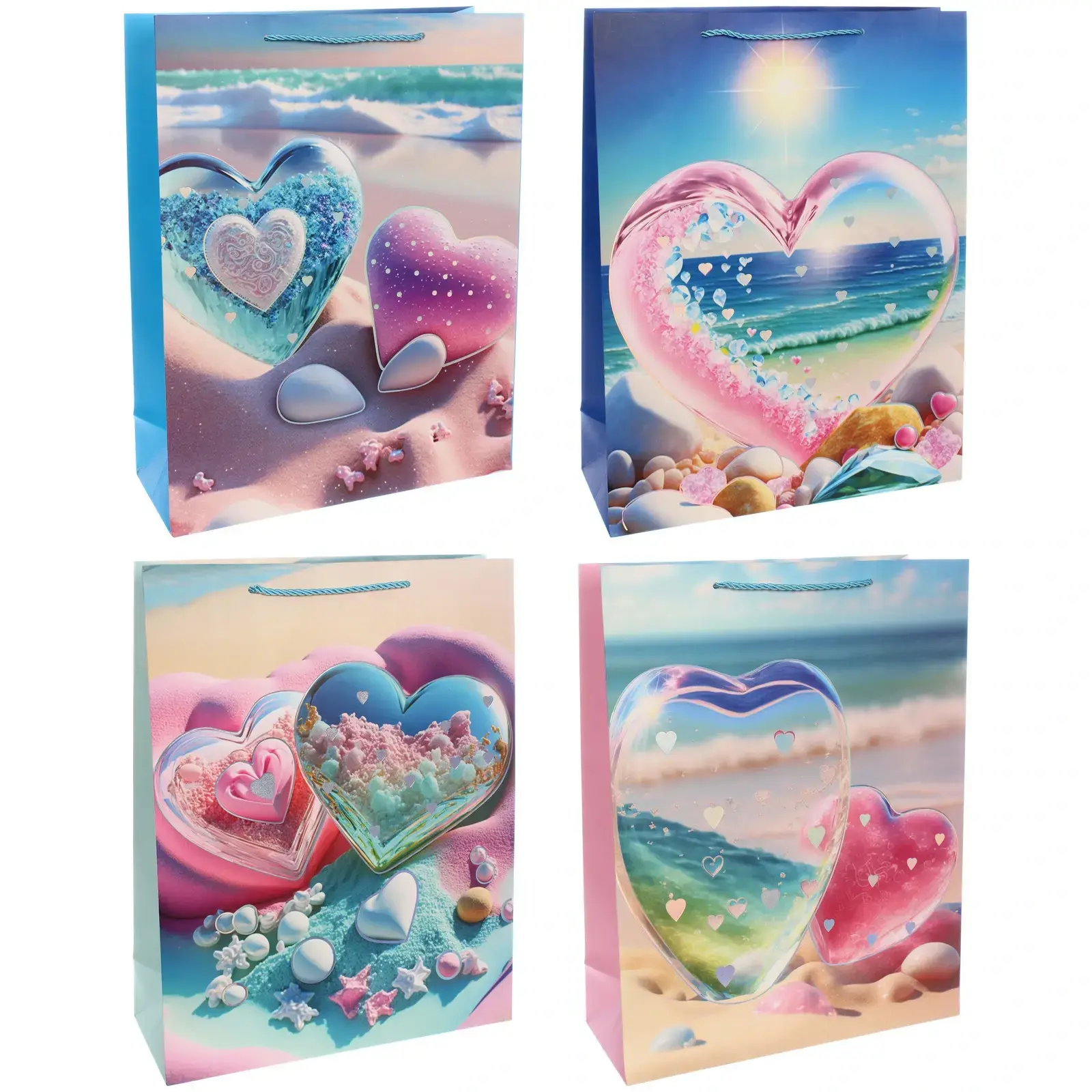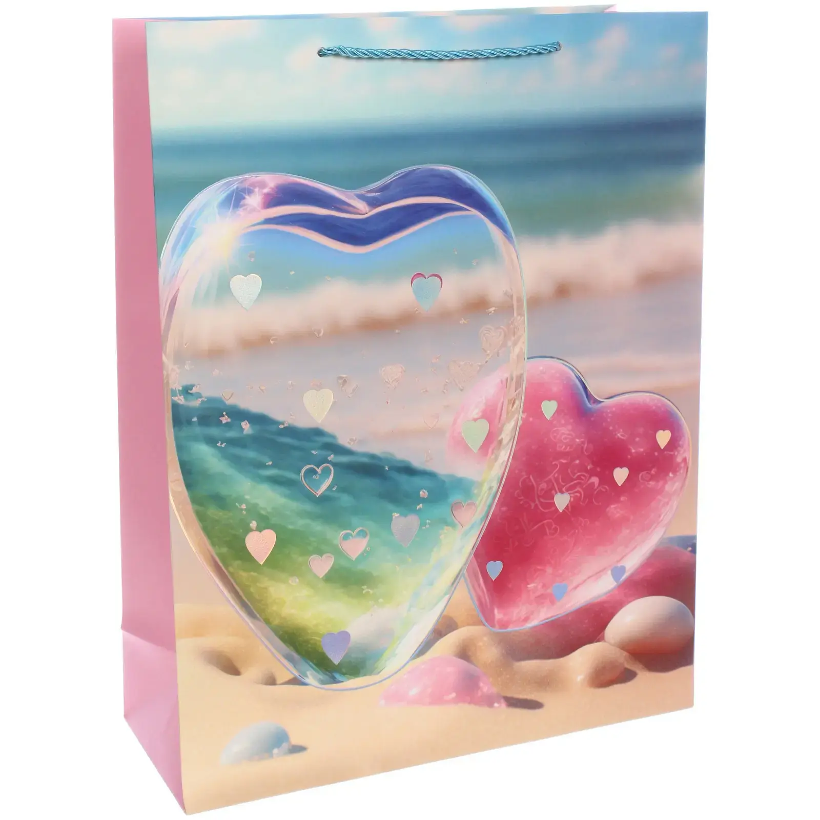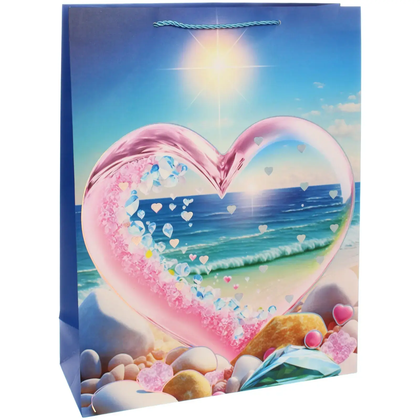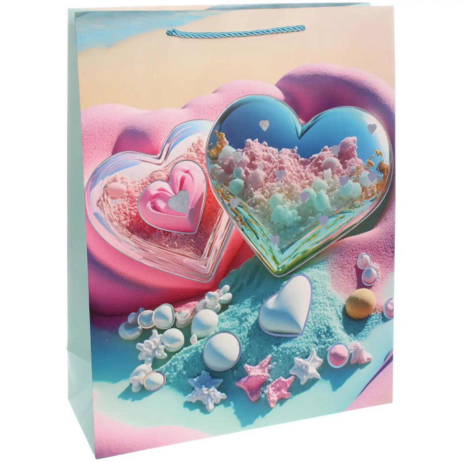 Изготовленный из качественной бумаги, пакет отличается прочностью и долговечностью. Он представлен в миксе пастельных цветов, что позволяет выбрать наиболее подходящий вариант для вашего подарка. Дизайн включает элементы, напоминающие морские ракушки и сердечки, что создает атмосферу праздника и романтики.