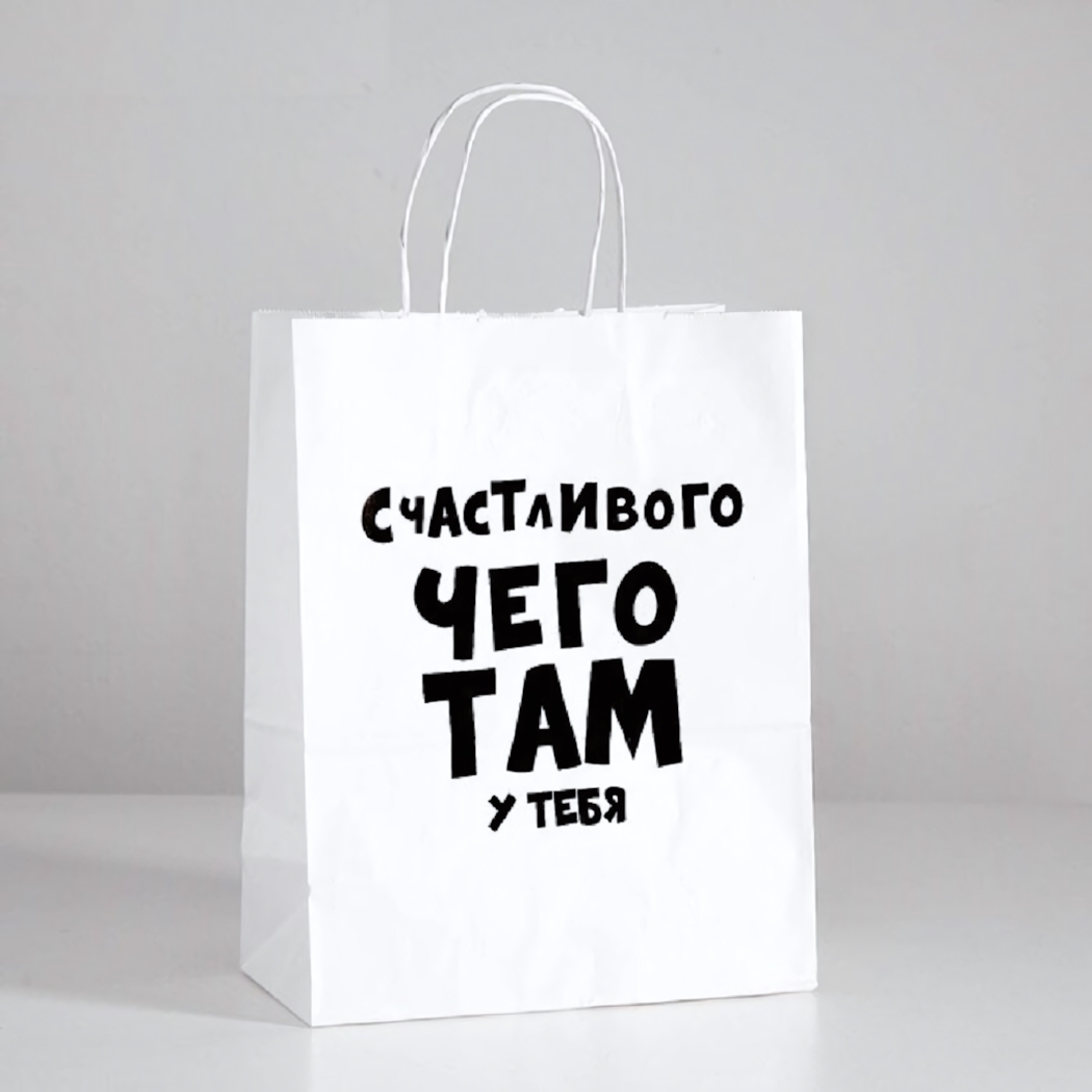 Подарочный пакет с провокационной фразой «Счастливого чего там у тебя» — идеальное решение для тех, кто ценит нестандартный подход. Его лаконичный дизайн с игривым посылом станет ярким акцентом любого сюрприза, вызывая улыбку и любопытство.