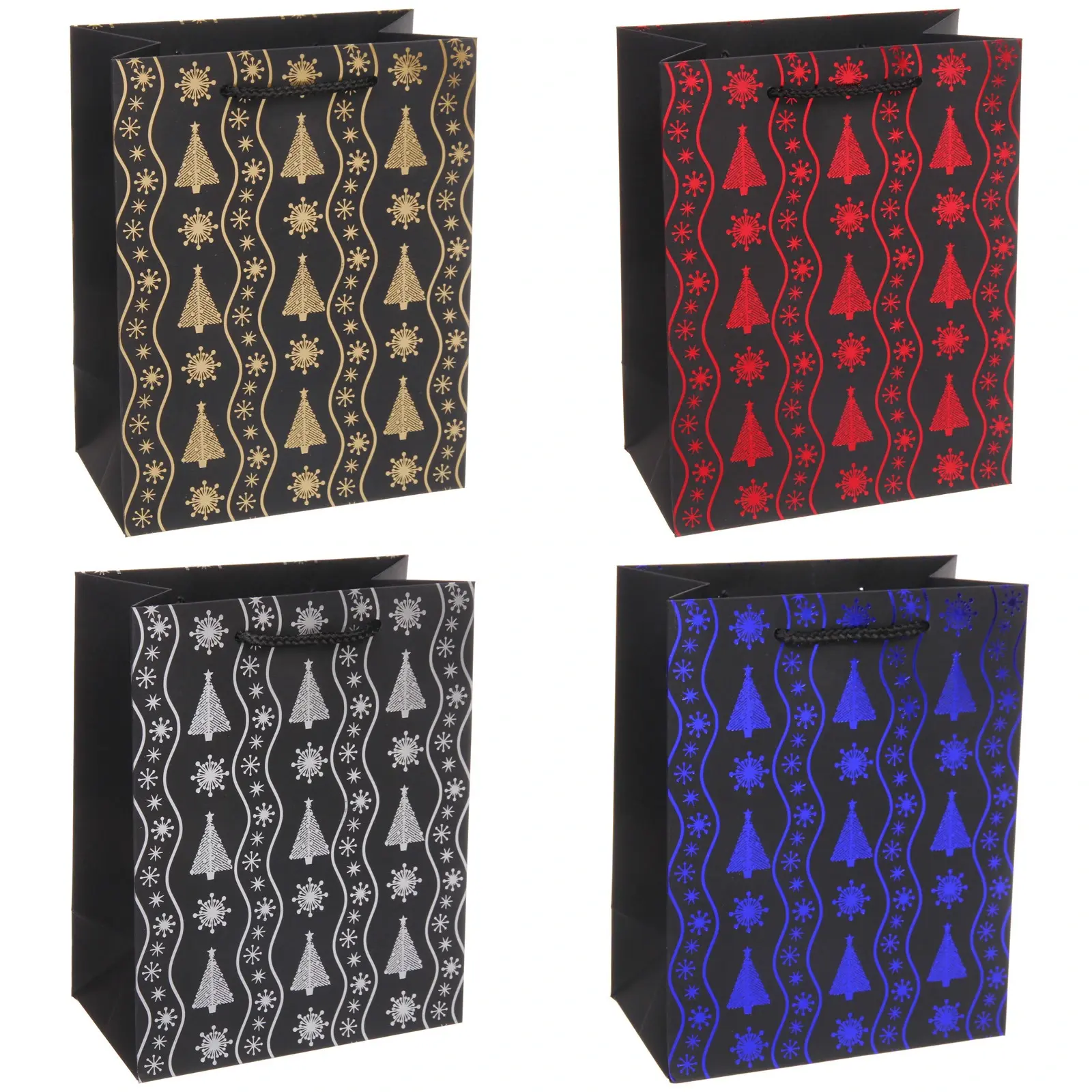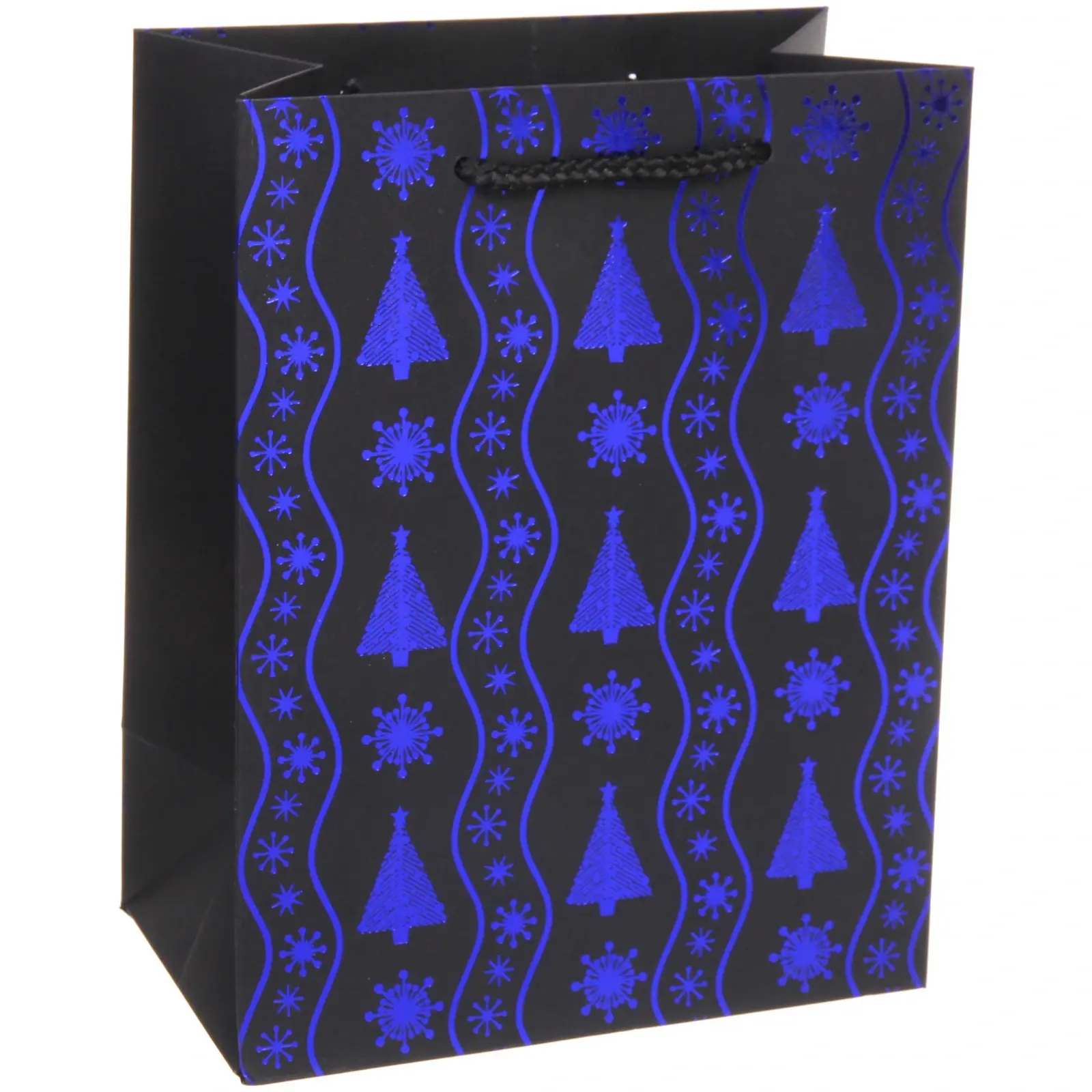Выбирая наш пакет, вы получаете не только красивую упаковку, но и практичное решение для подарков. Его черный цвет с ярким узором в виде снежинок и елочек добавляет изысканности, а короткие ручки обеспечивают удобство при переноске. Пакет подходит для подарков как для взрослых, так и для детей, что делает его универсальным выбором для любого случая.