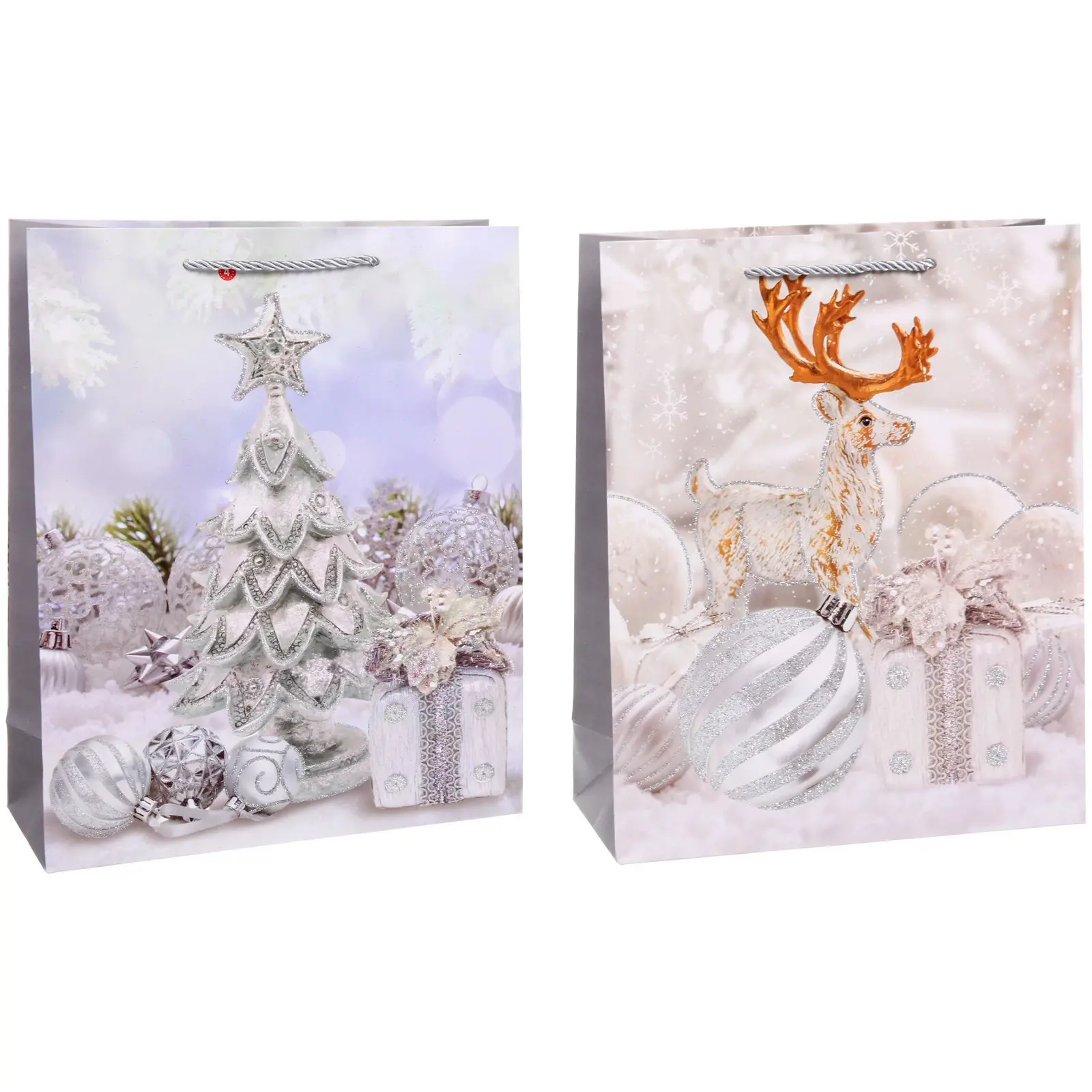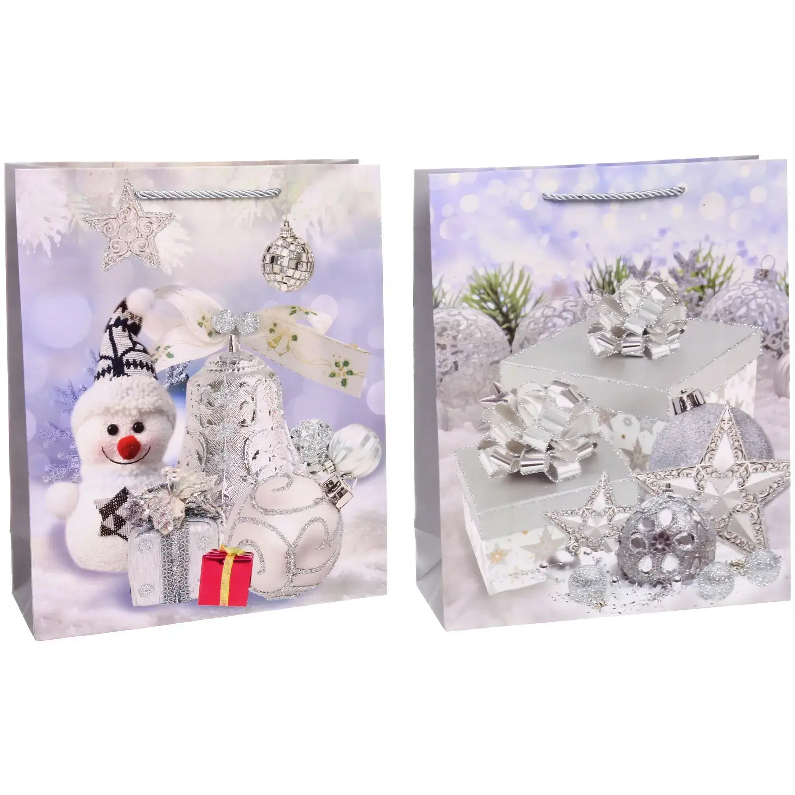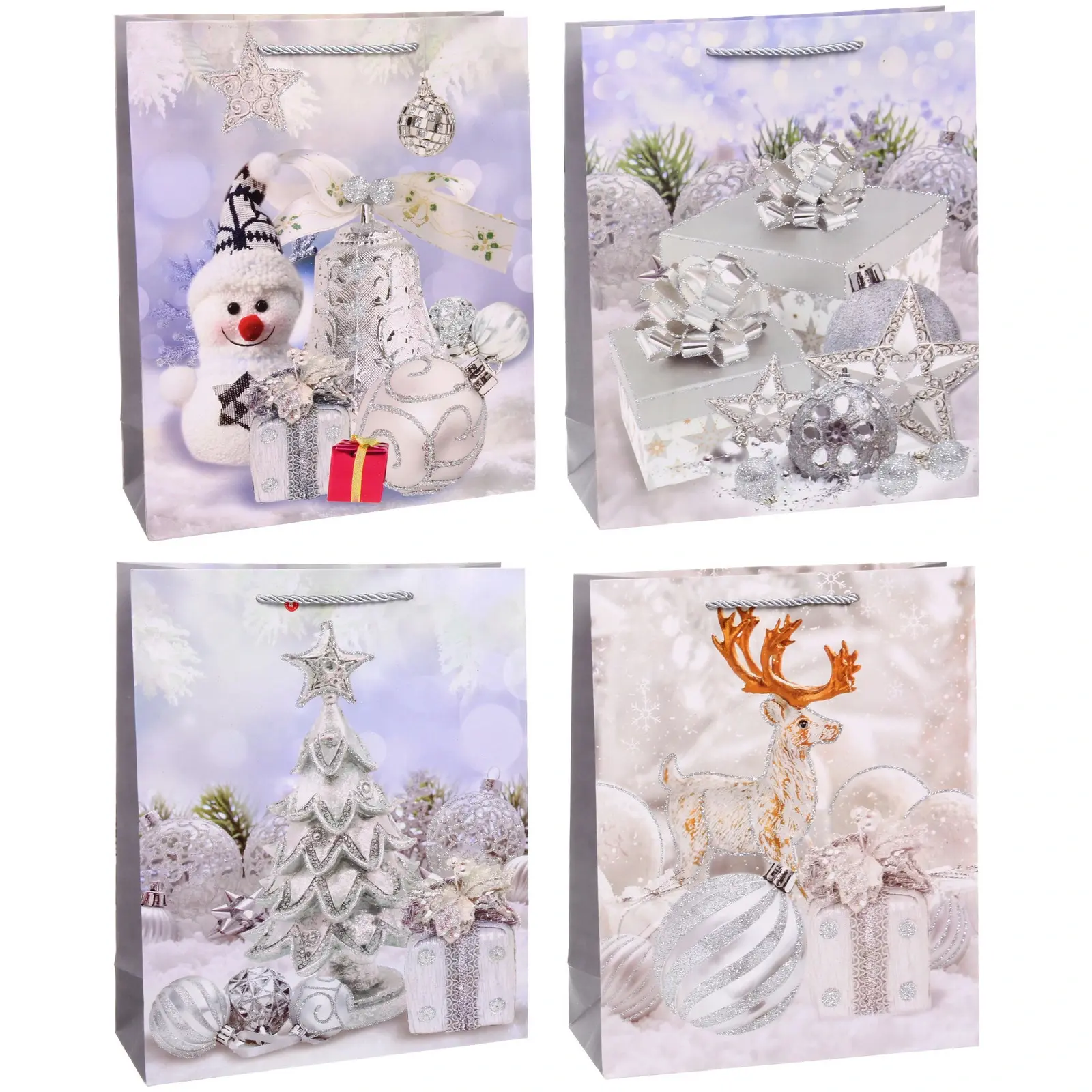 Подарите праздник близким с стильным пакетом 'Серебряная сказка'. Его элегантный дизайн и качественное исполнение создают безупречный образ новогоднего подарка.