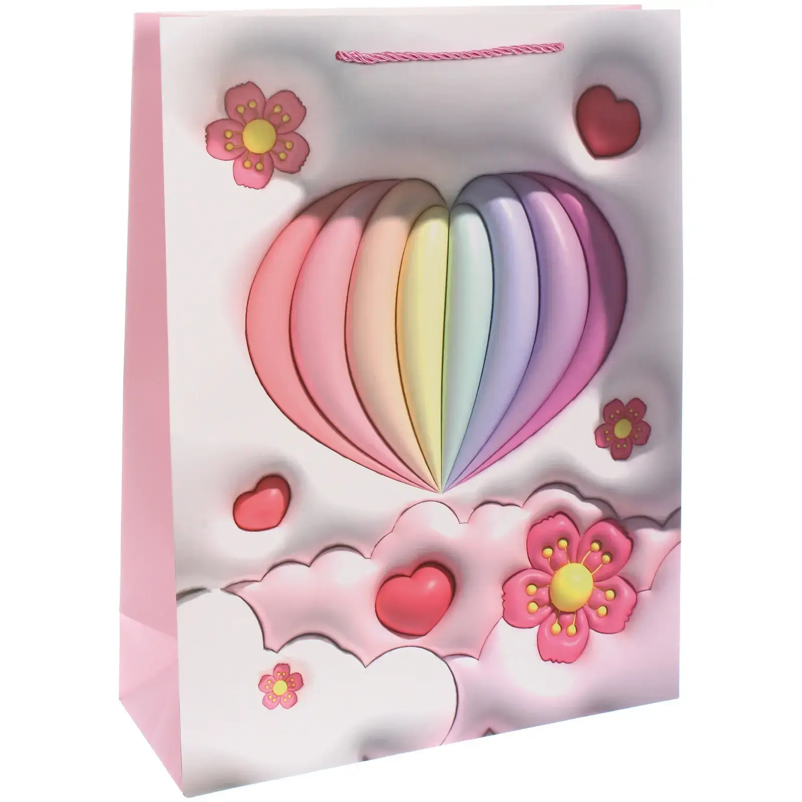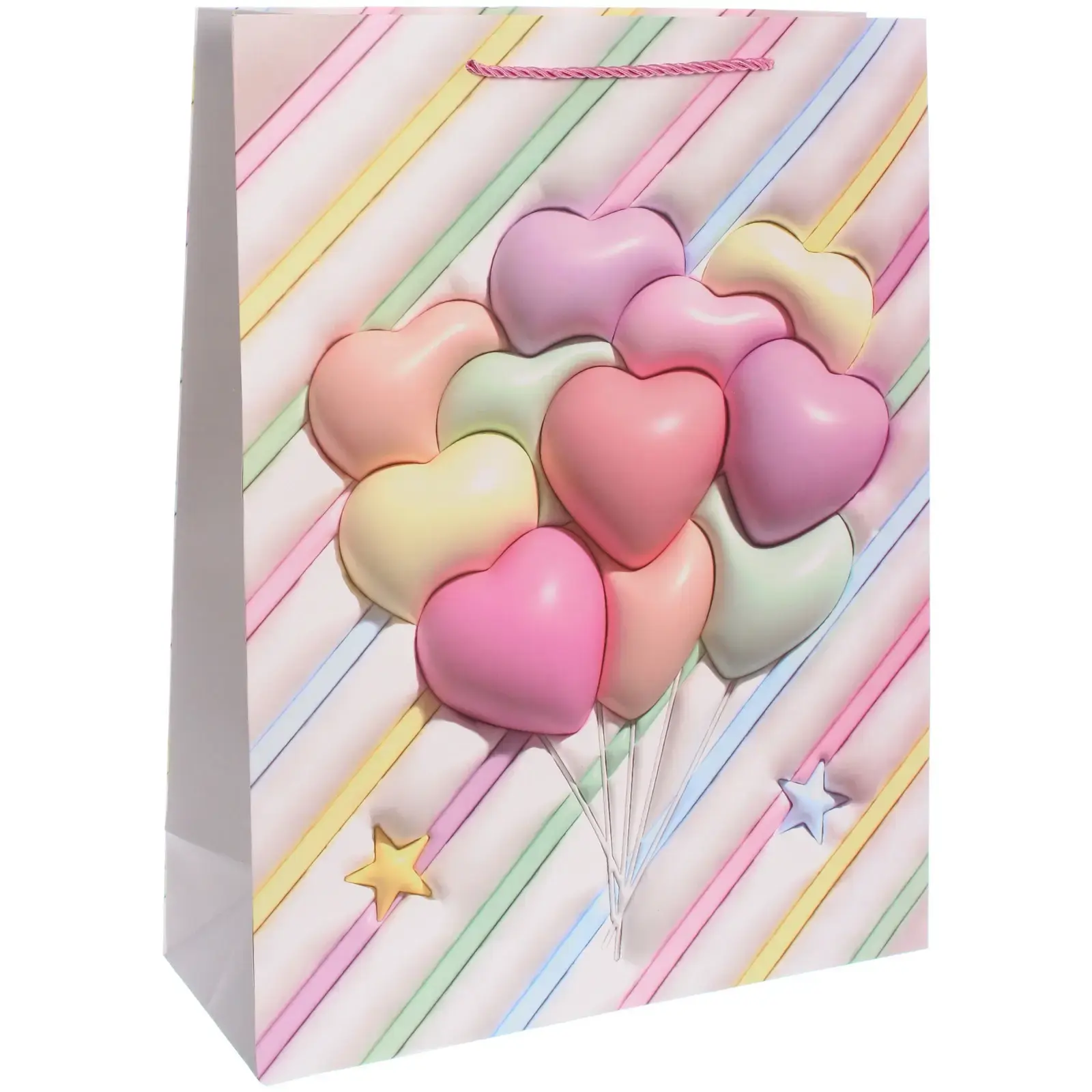 Подарочный пакет 'Шарики в воздухе' превратит вручение любого презента в настоящее событие. Его яркий дизайн с элементами 3D-графики и нежными пастельными тонами создает атмосферу праздника и радости.