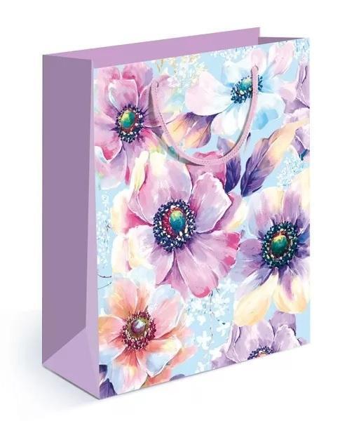 Пакет подарочный "Сиреневые цветы", размер M, бумага, голубой фон, пастельные тона