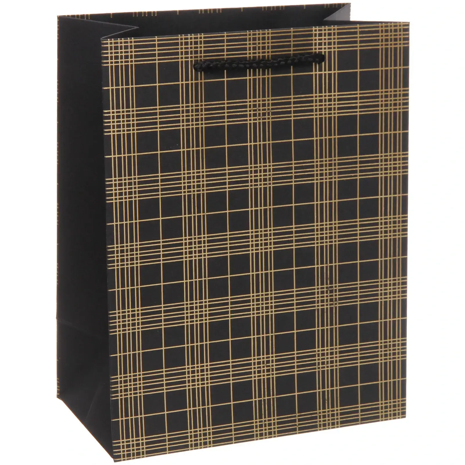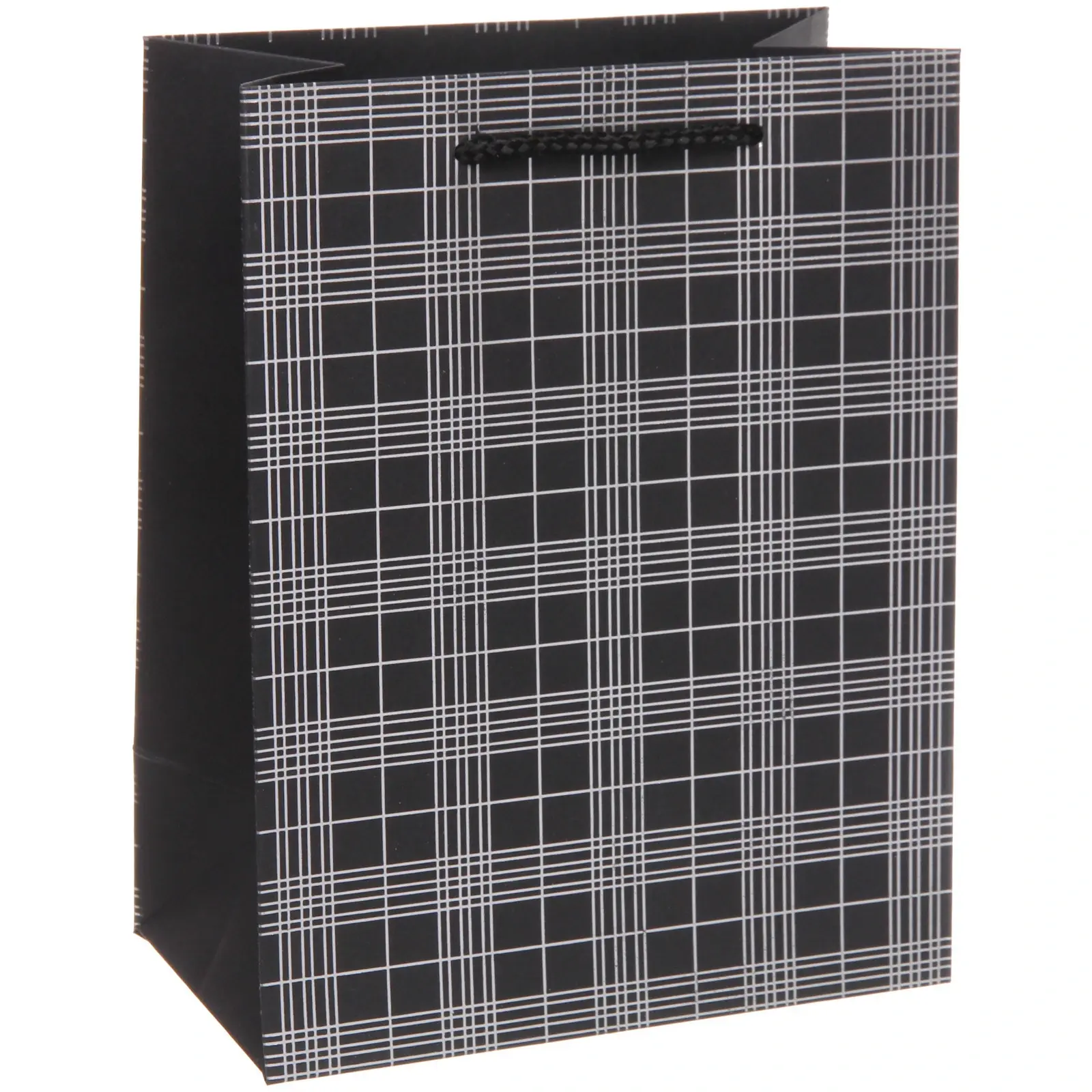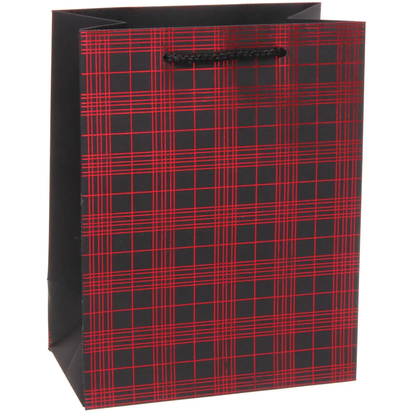 Пакет выполнен из бумаги, что делает его легким и удобным в использовании. Его размеры 23х18х10 см идеально подходят для упаковки книг, косметики, игрушек и других подарков. Стильный клетчатый узор в сочетании с классическим черным цветом делает его универсальным для любого повода.