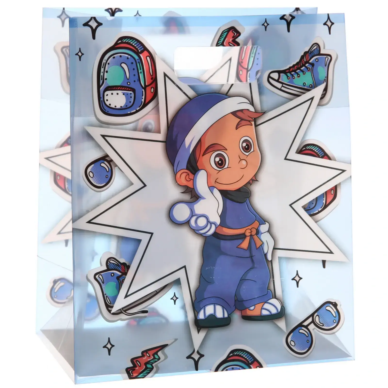 Ищете идеальный способ упаковать подарок для вашего маленького героя? Пакет подарочный «Стильный мальчик» станет отличным выбором! Его яркий и игривый дизайн с голубым фоном и веселыми рисунками привлечет внимание и создаст праздничное настроение. Этот пакет не только красивый, но и практичный, что делает его идеальным для любого случая.