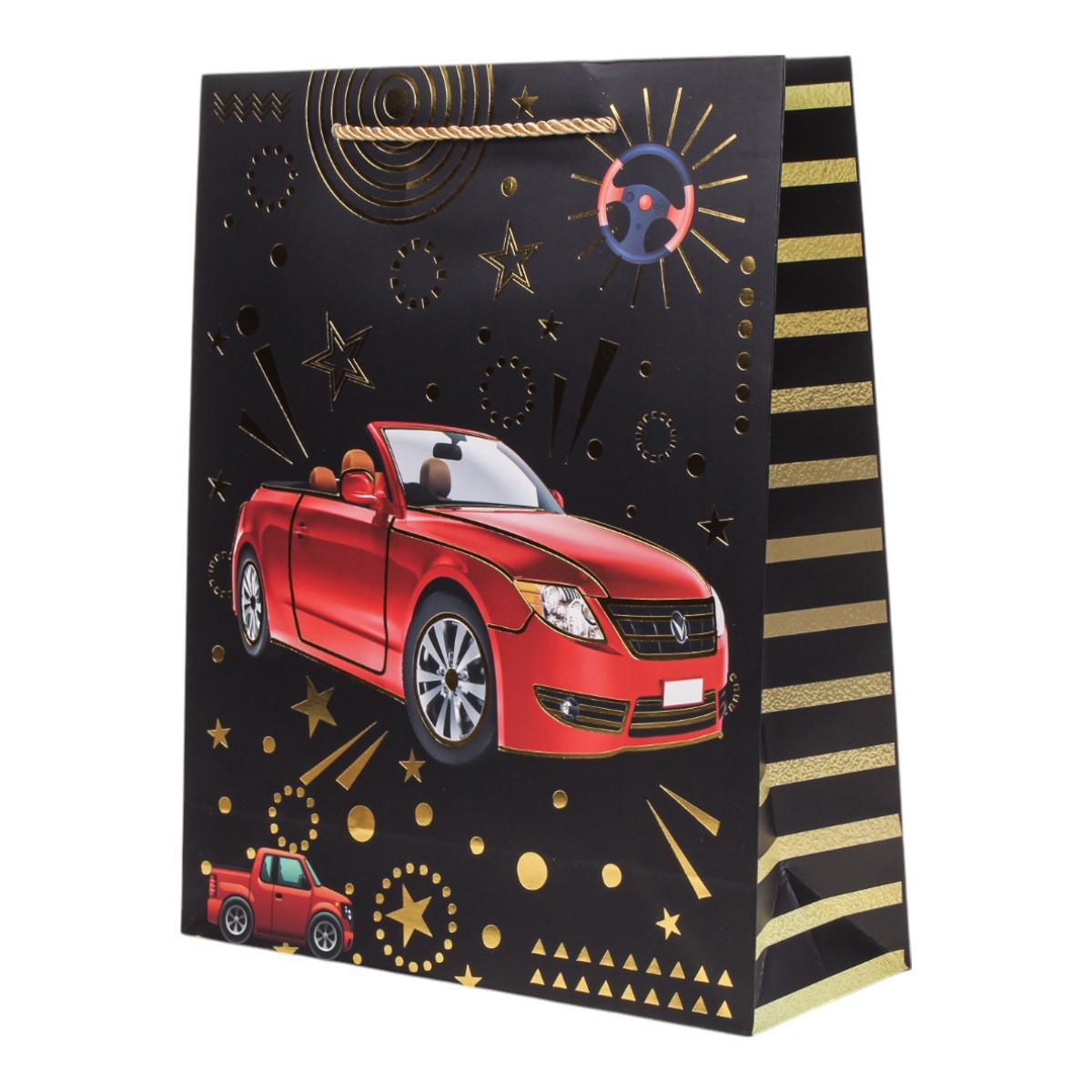 Подарочный пакет "Supercars" станет идеальным решением для упаковки подарков. Его уникальный дизайн с изображениями спортивных автомобилей и золотым тиснением добавит элегантности и стиля любому подарку. Этот пакет не только красив, но и практичен, что делает его отличным выбором для любого праздника.
