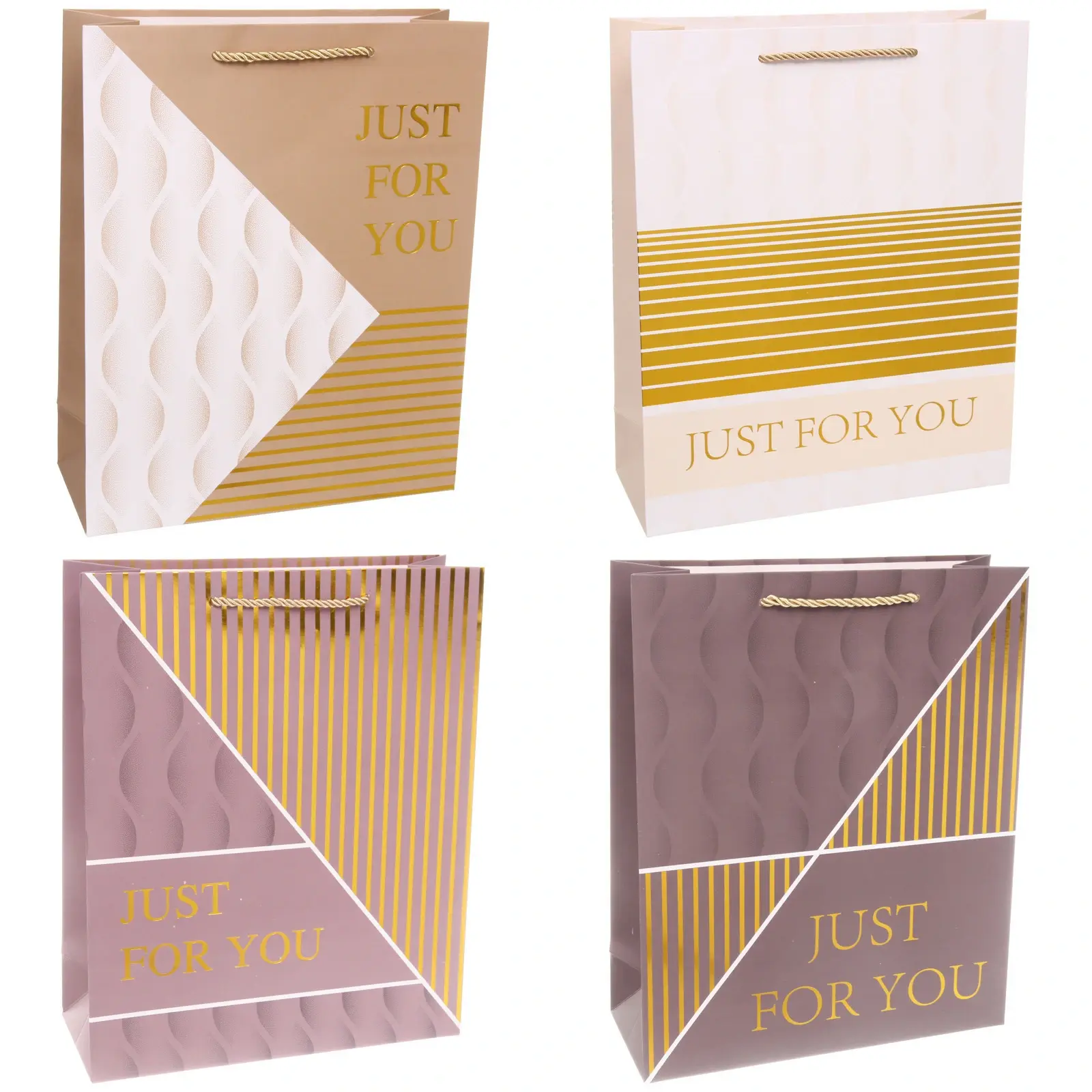 Каждый пакет украшен уникальными элементами: золотистыми полосами, текстурными деталями и волнообразными узорами. Коллекция включает несколько цветовых решений: бежевый, сливовый, розовый – что позволяет выбрать идеальный вариант для любого случая.