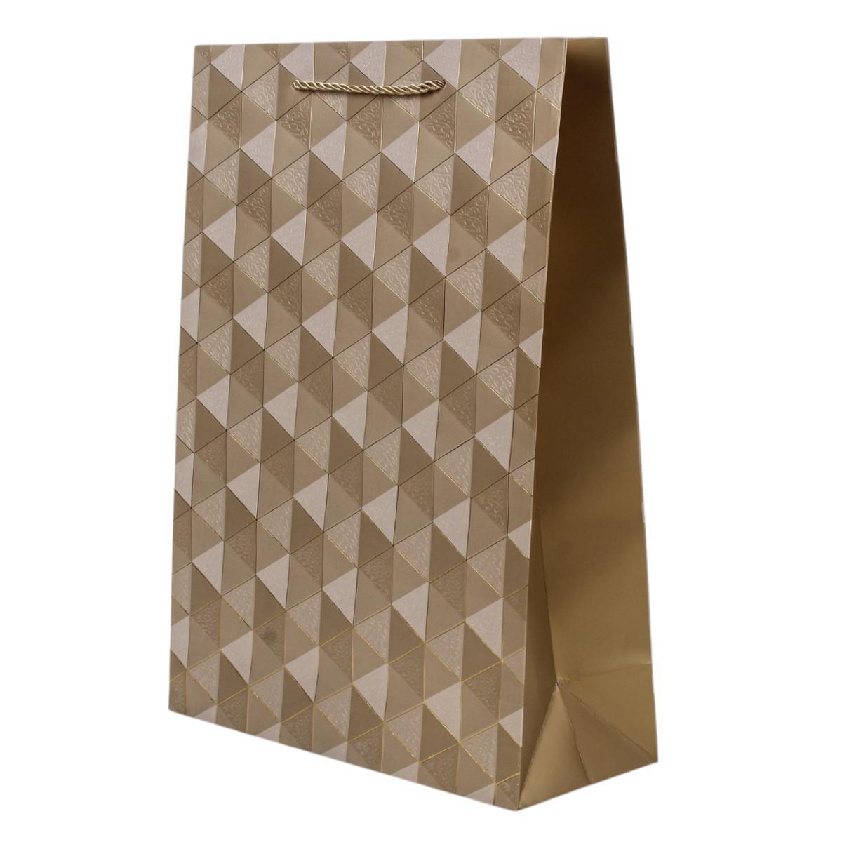 Пакет подарочный "Triangle" 30х41.5х12см, тиснение золотом, ручки-шнурок, микс 4 цветов