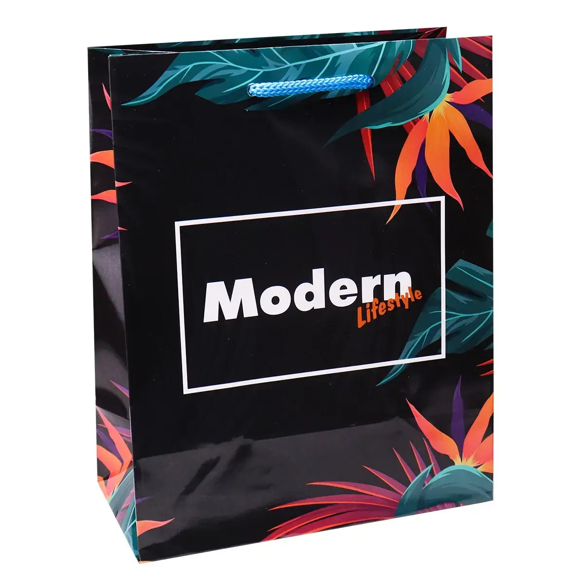 Плоское дно обеспечивает устойчивость при установке. Черный фон с яркими акцентами создает стильный контраст, а надпись 'Modern Lifestyle' добавляет современный штрих.