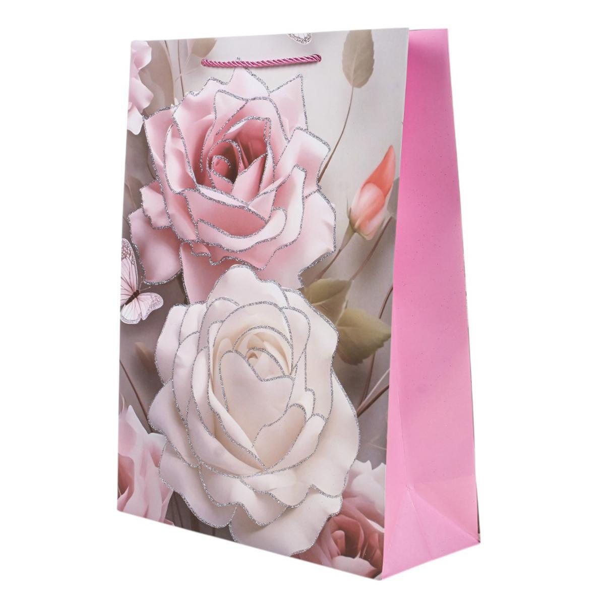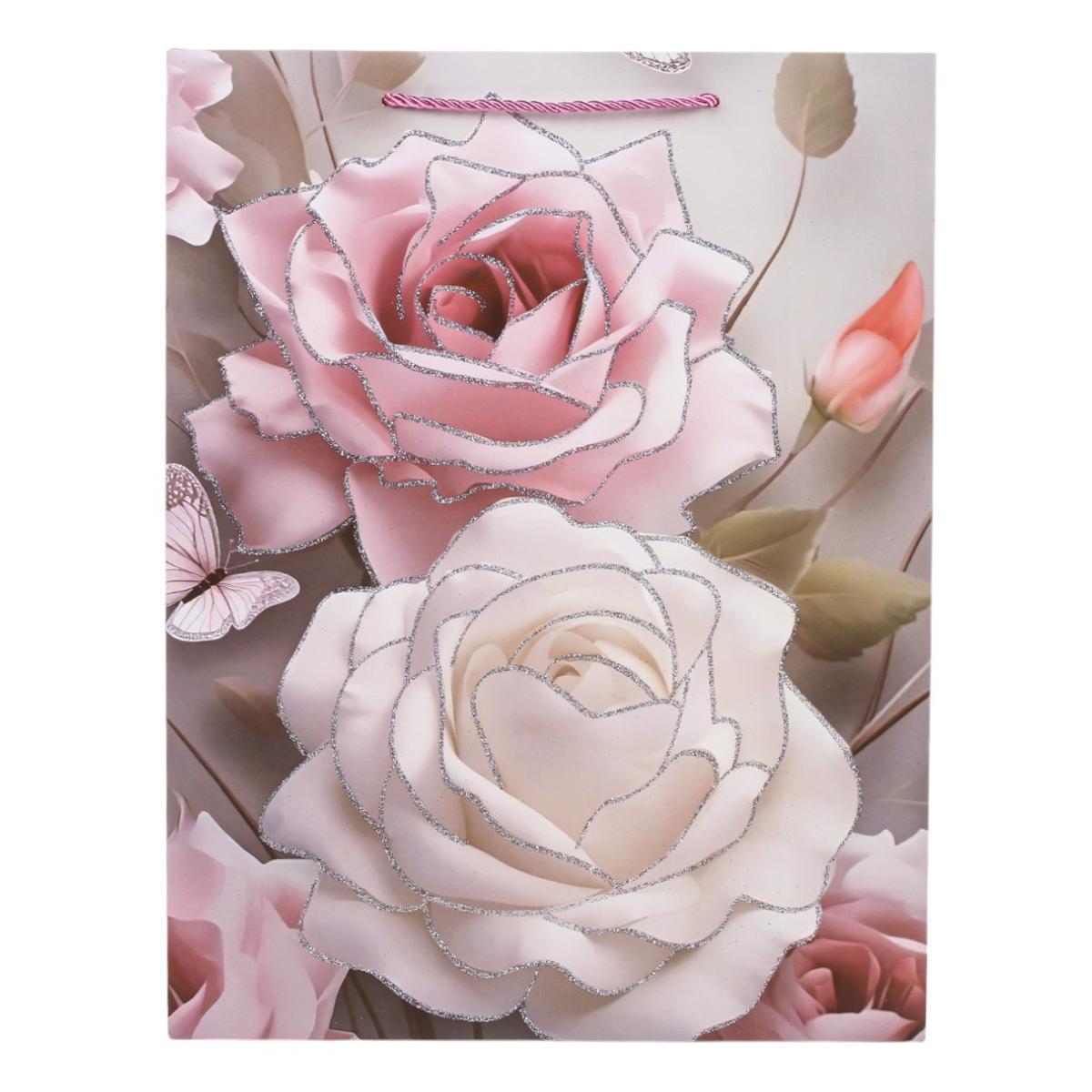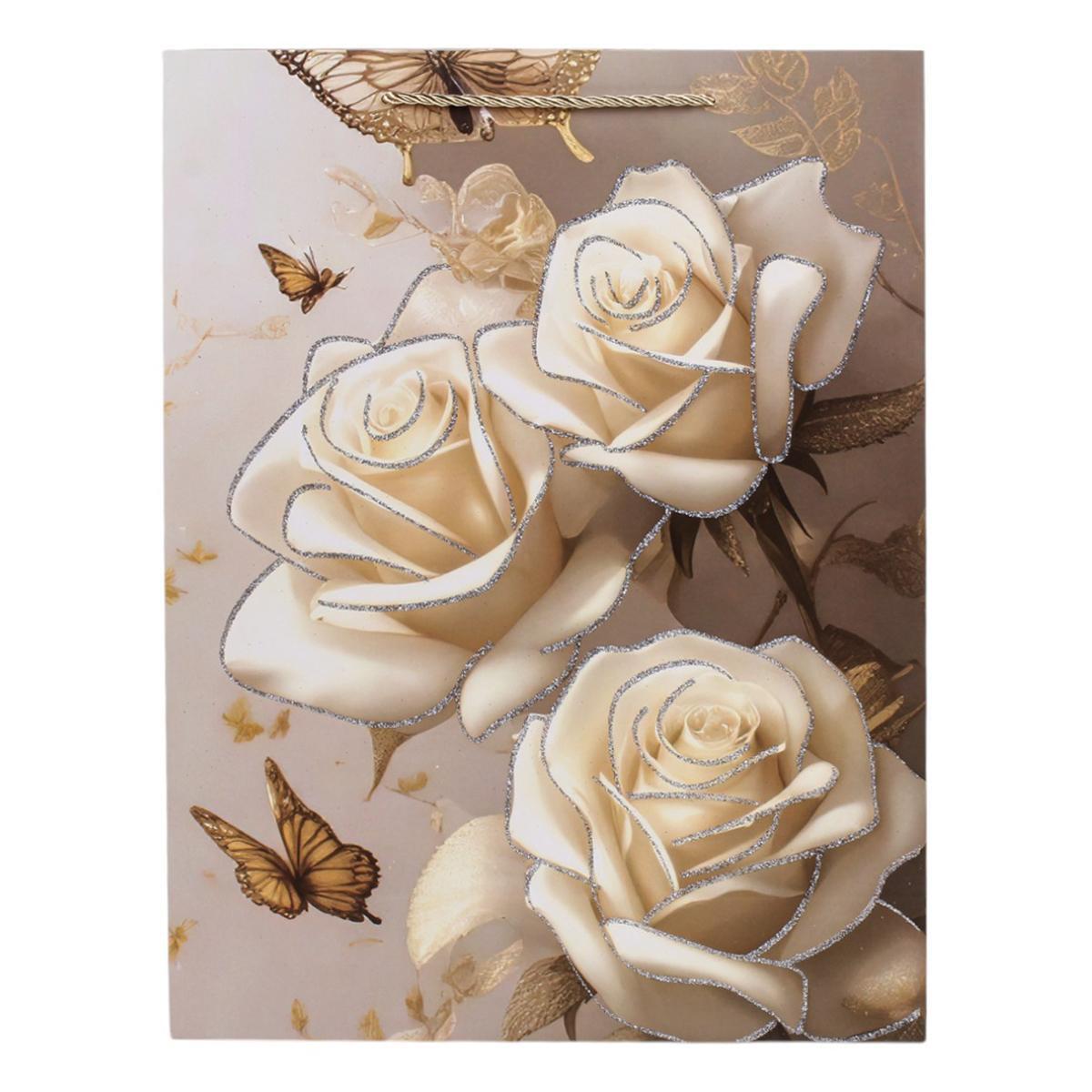 Сделайте ваш подарок особенным с стильным подарочным пакетом "Цветы". Благодаря изысканному дизайну с глиттерными блестками и объемными 3D-элементами, он станет настоящим украшением любого праздника.