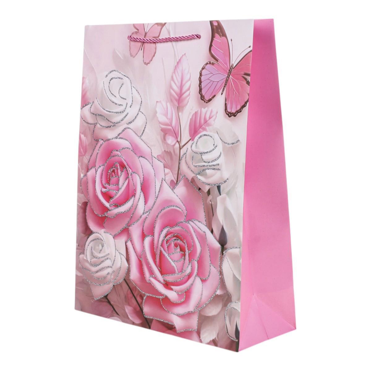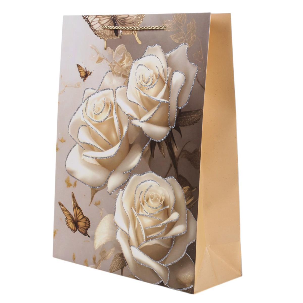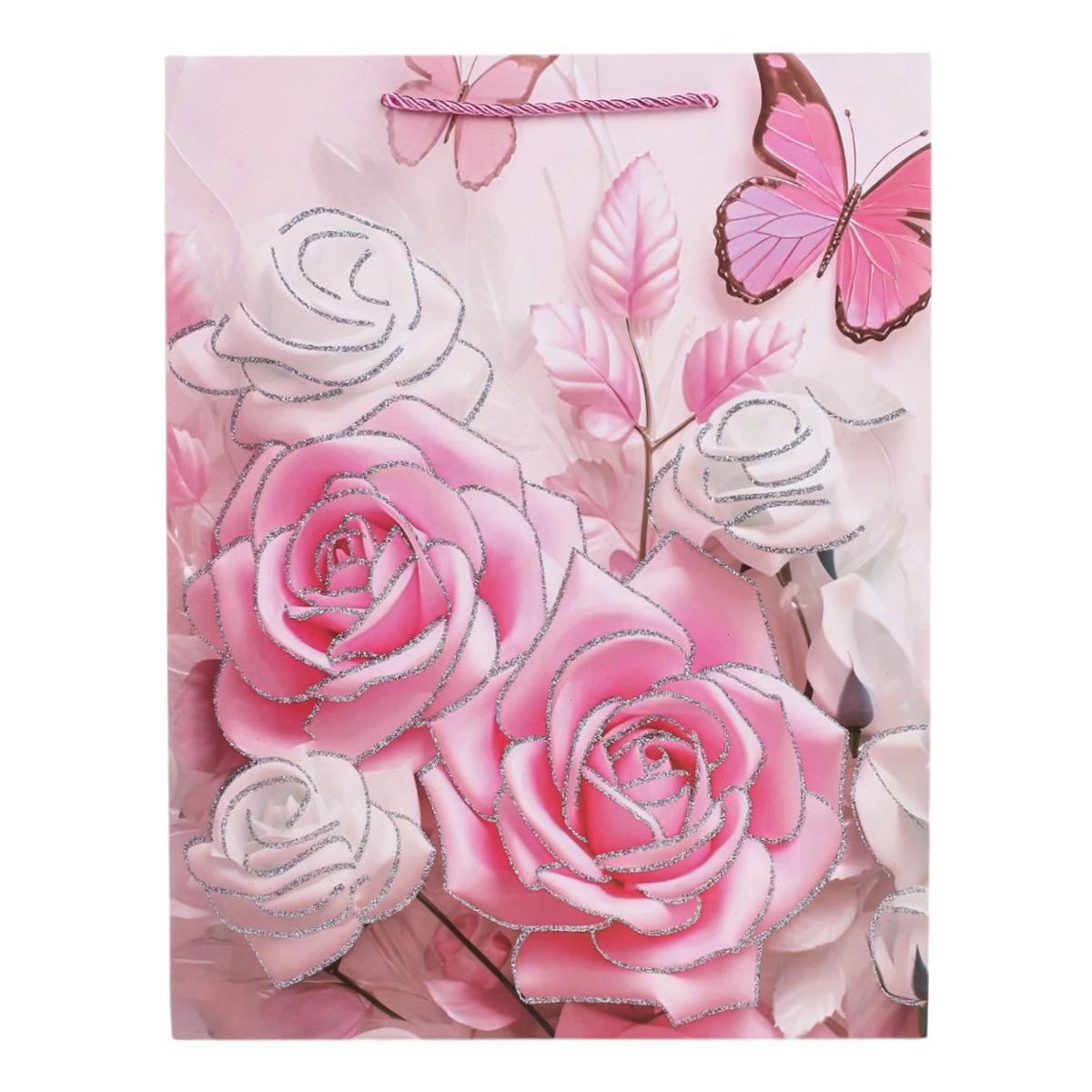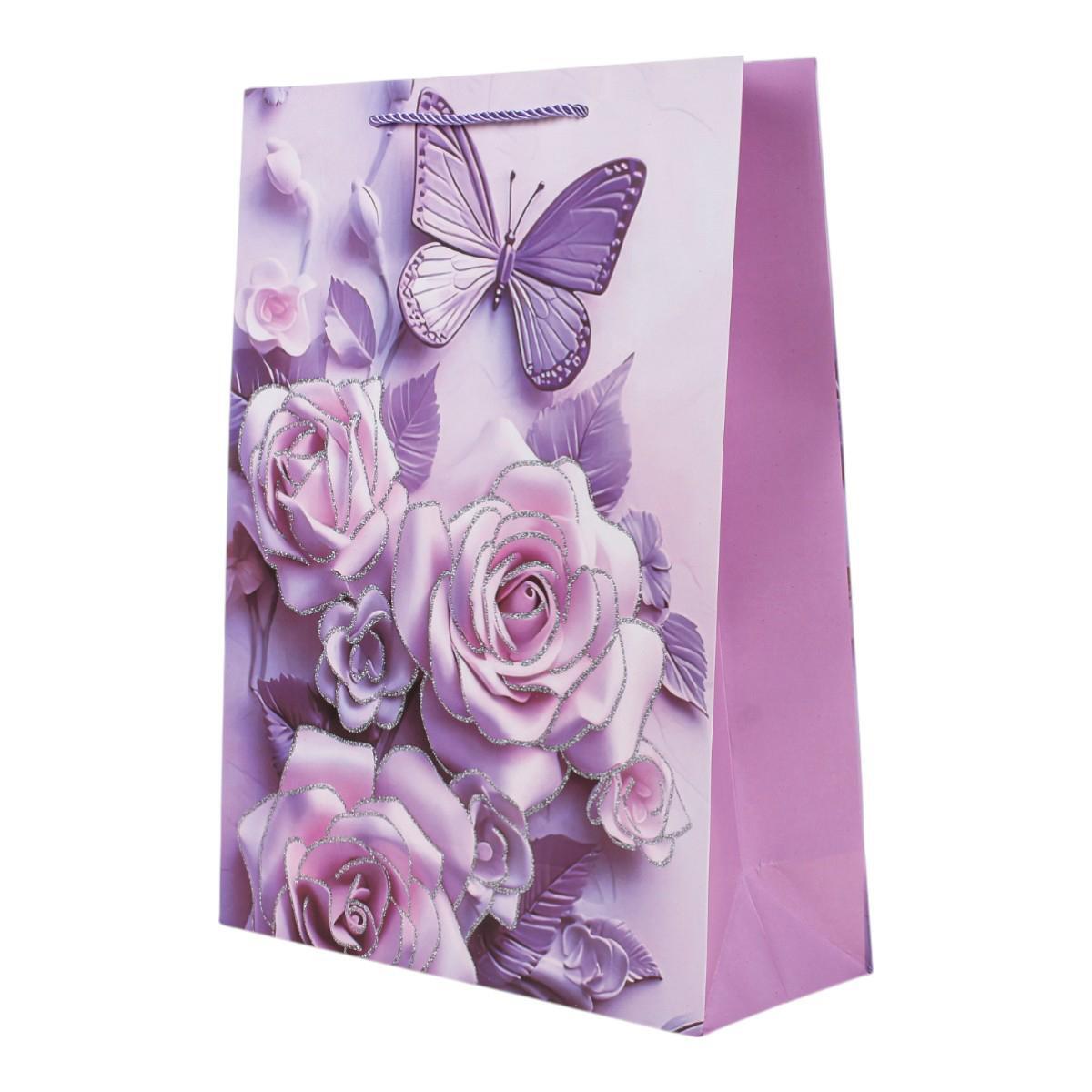 Подарочный пакет "Цветы", 30х39х11см, с блестками и 3D-эффектом, 4 цвета