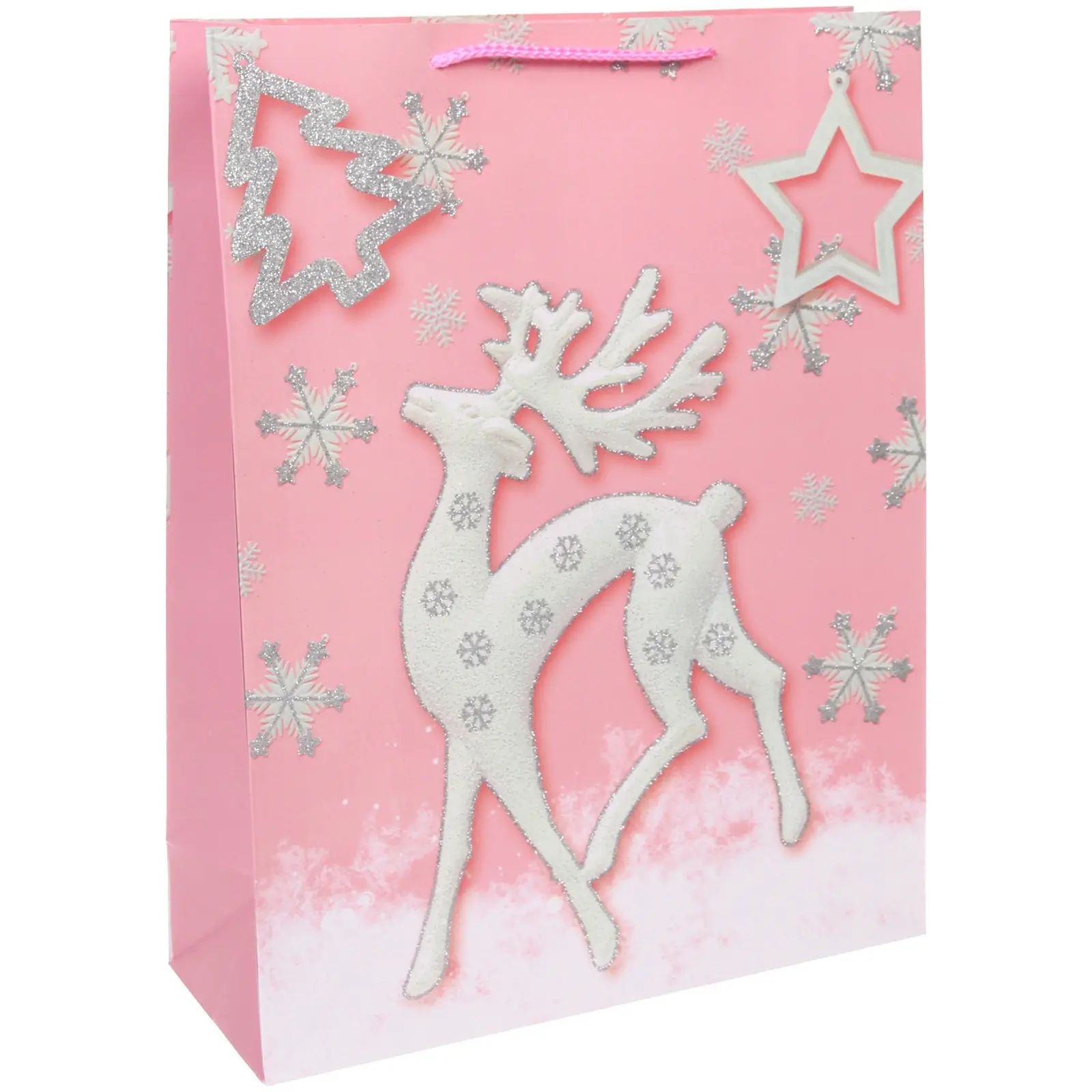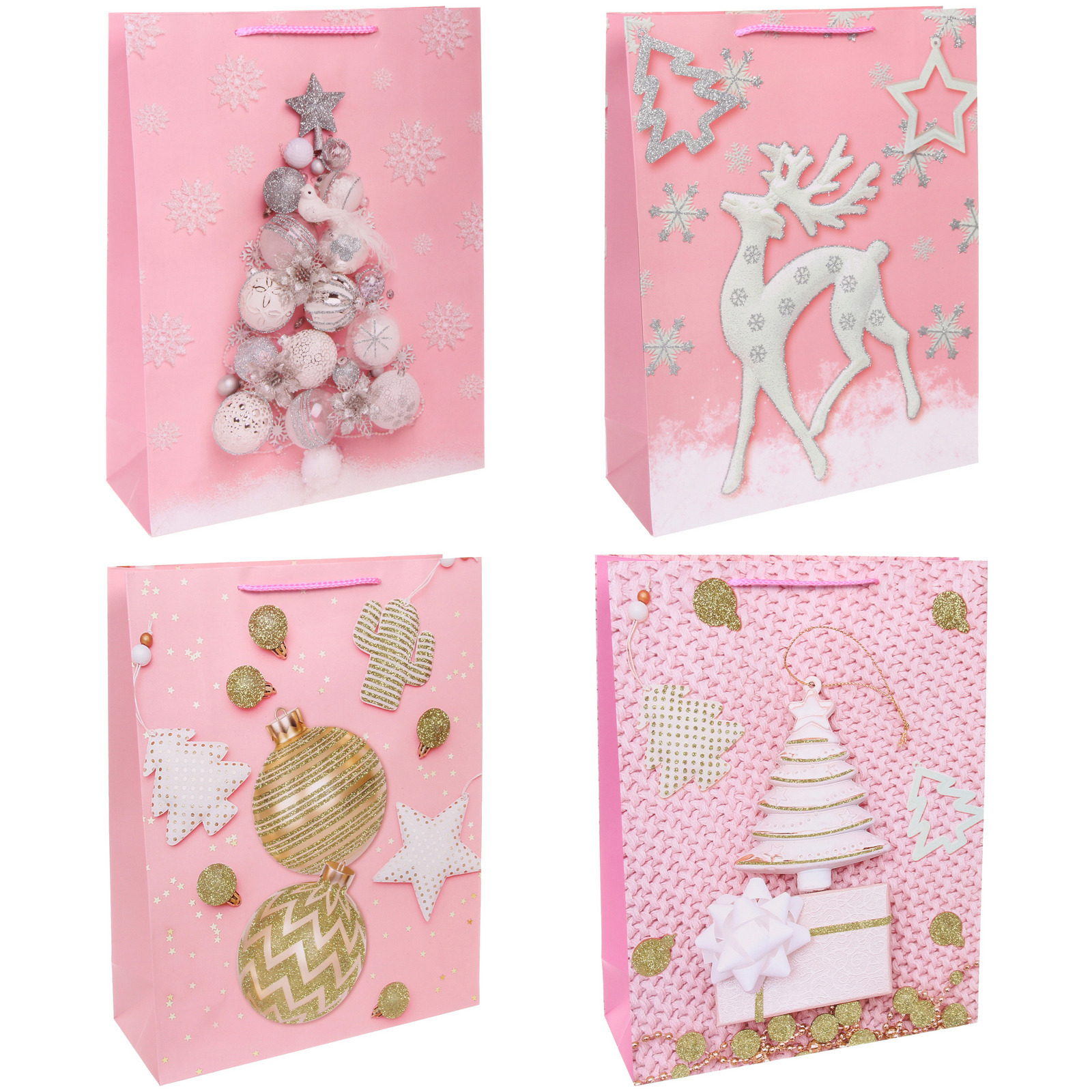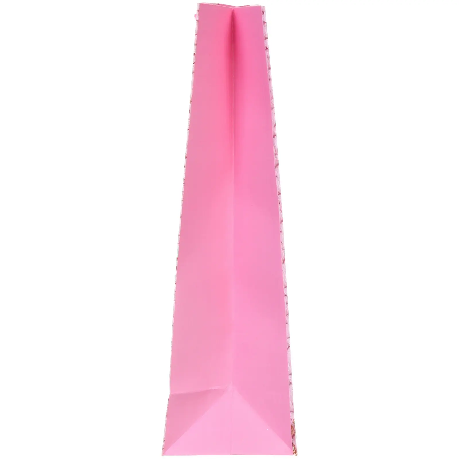 Пакет имеет размеры 31х40х12 см, что позволяет упаковать в него подарки различного формата. Он идеально подходит для упаковки игрушек, косметики, книг и других подарков. Ручка из розового шнура обеспечивает удобство при переноске, а прочный бумажный материал гарантирует надежность.