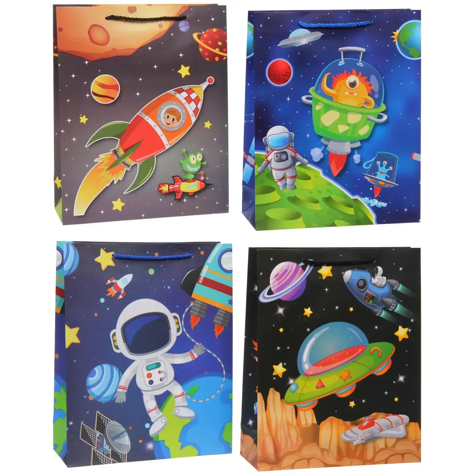 Выбирая пакет «Весёлый космос», вы получаете не только красивую упаковку, но и возможность сделать ваш подарок более запоминающимся. Яркие иллюстрации ракет, космонавтов и планет создают атмосферу праздника и волшебства. Такой пакет станет отличным выбором для подарков на детские праздники, а также для тематических мероприятий.