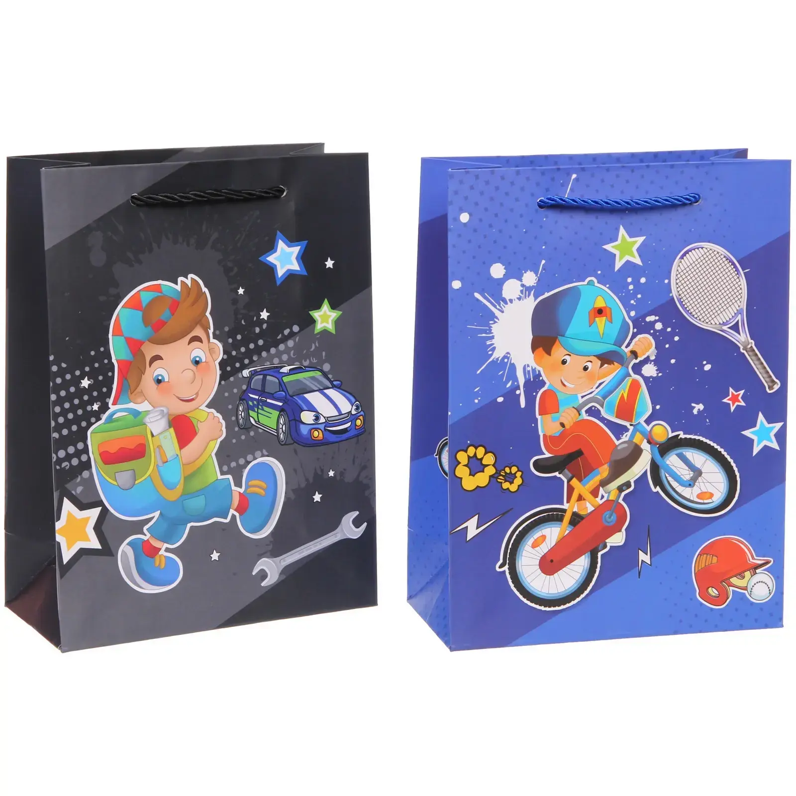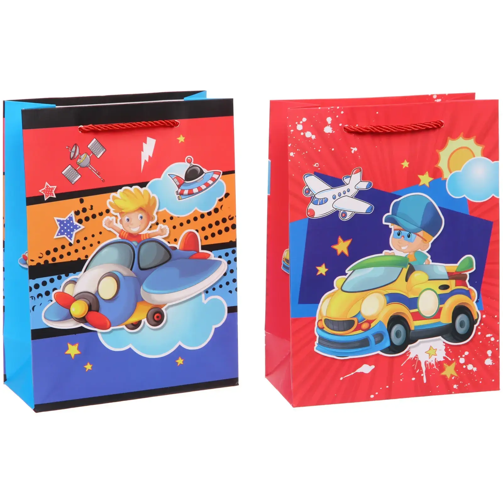 Детский праздник станет ещё ярче с подарочным пакетом 'Весёлый транспорт'. Каждый рисунок создан вдохновлять: от гоночных машин до космических кораблей — всё для маленьких мечтателей.