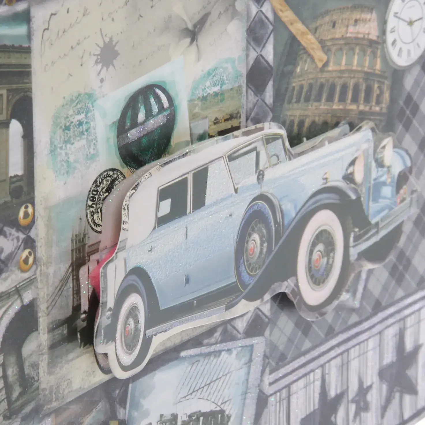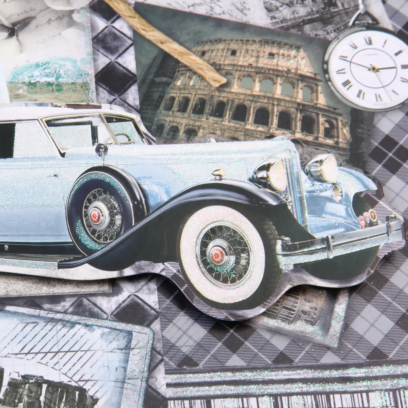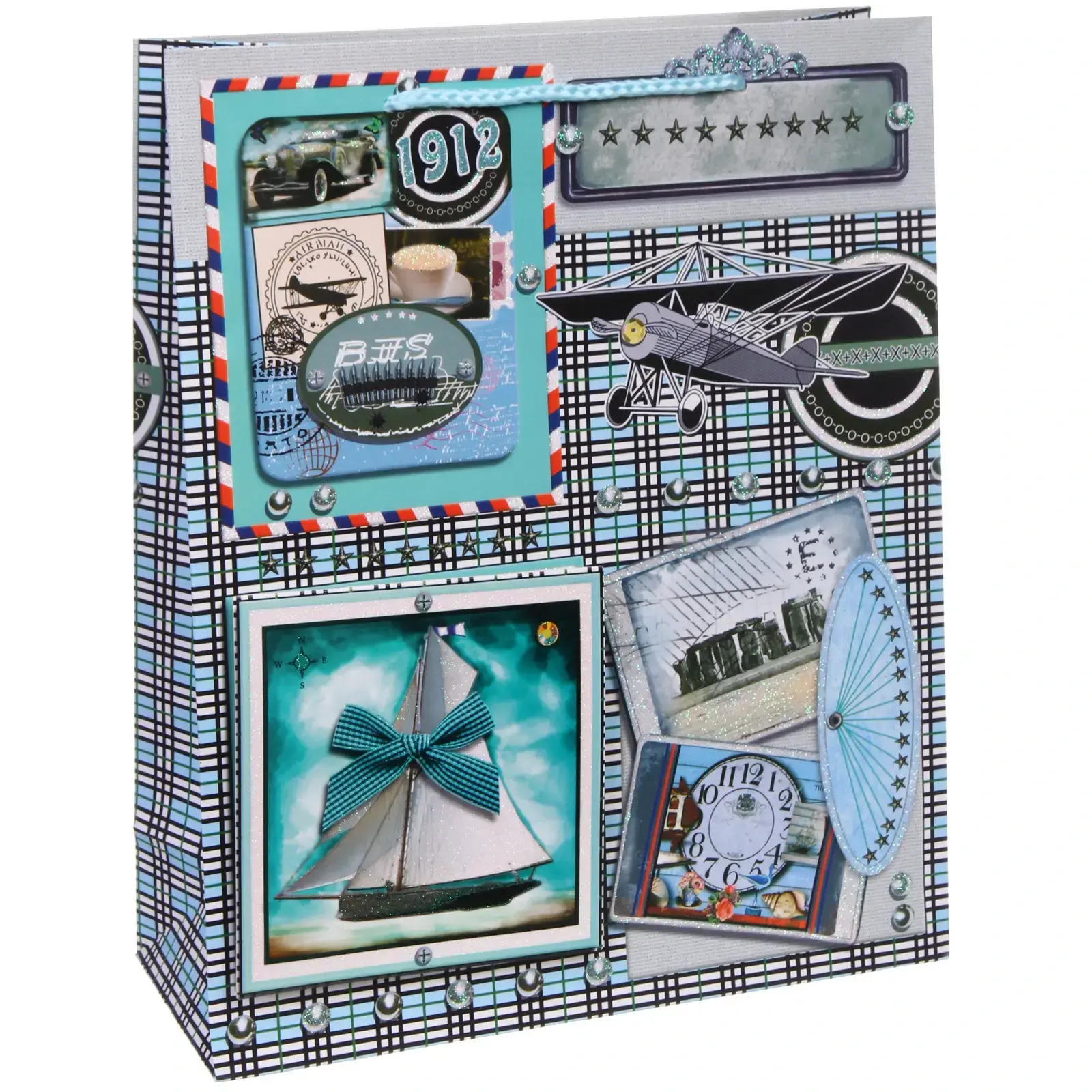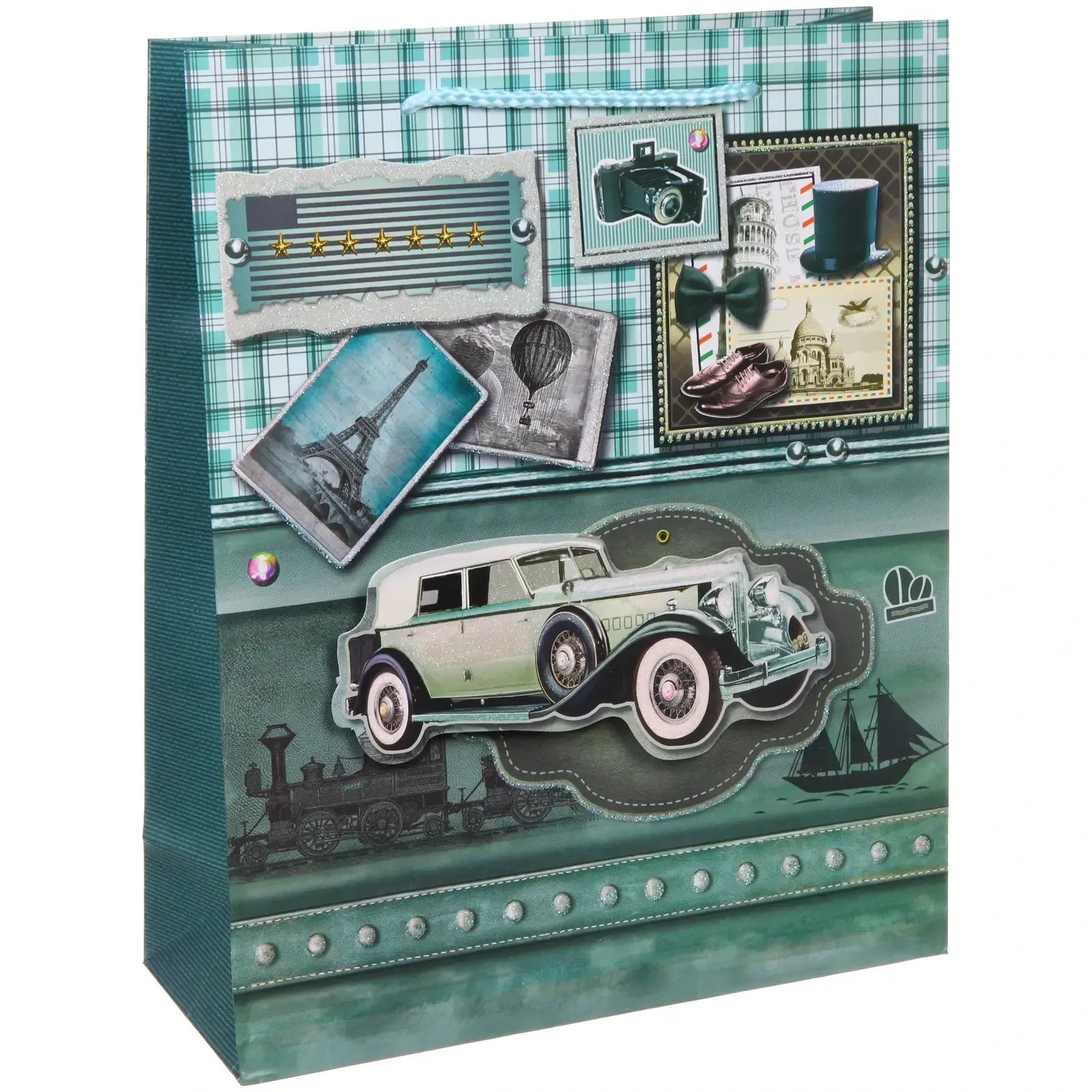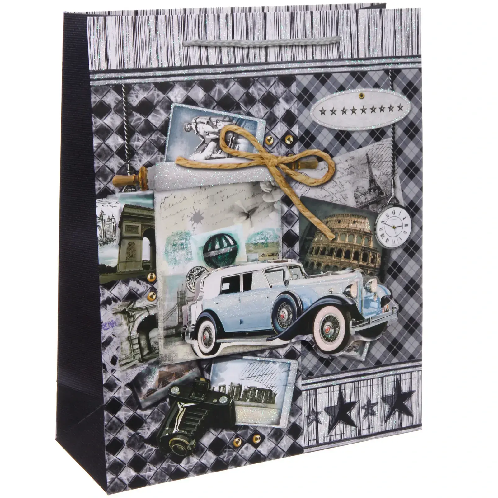 Пакет имеет размеры 26х32х10 см и выполнен в миксе различных винтажных дизайнов, что делает его уникальным. Он украшен графическими элементами, такими как старинные автомобили и часы, что придает ему особый шарм. Используйте пакет «Винтаж» для упаковки подарков и создайте атмосферу праздника и радости!
