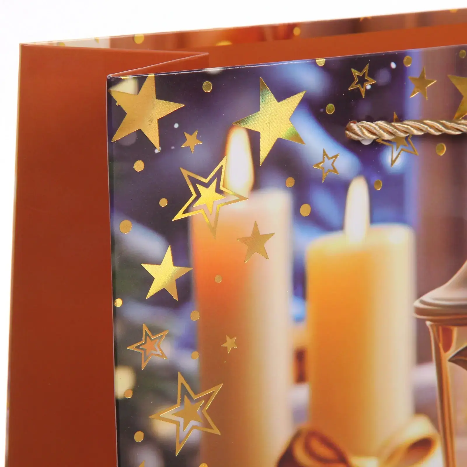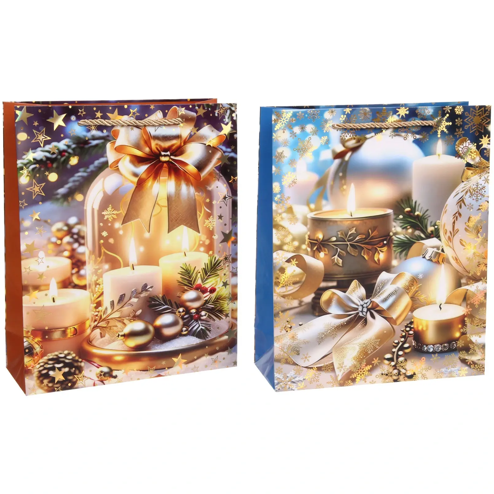 Выбирая пакет «Волшебный очаг», вы получаете не только красивую упаковку, но и практичное решение для подарков. Его яркий дизайн с изображениями свечей и новогодней атрибутики создаст праздничное настроение и подчеркнет важность момента. Пакет легко складывается и хранится, что экономит место.