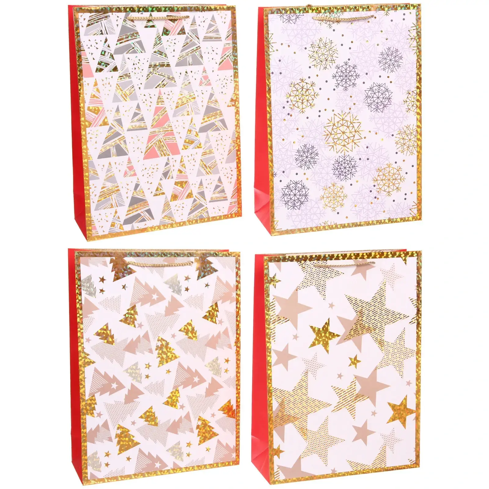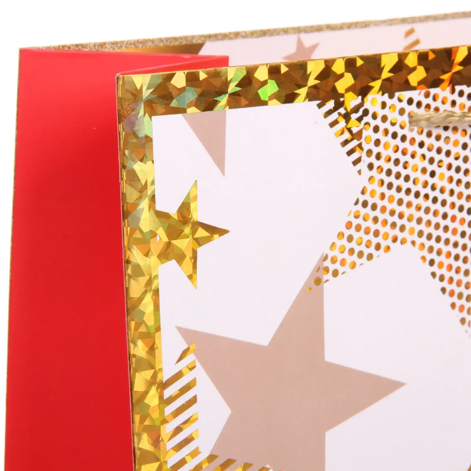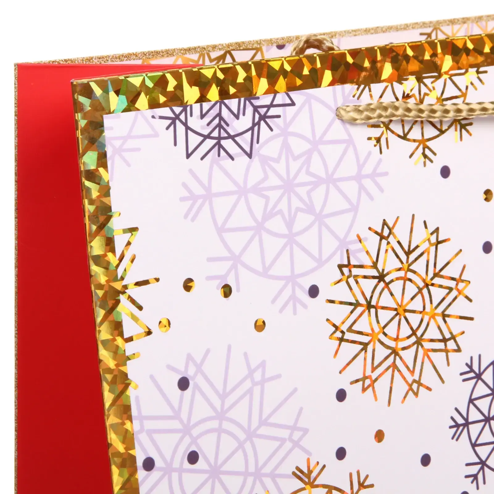 Пакет изготовлен из качественной бумаги с использованием блестящих элементов, которые придают особый шарм вашим подаркам. Золотистая отделка по краям добавляет элегантности и завершенности образу.
