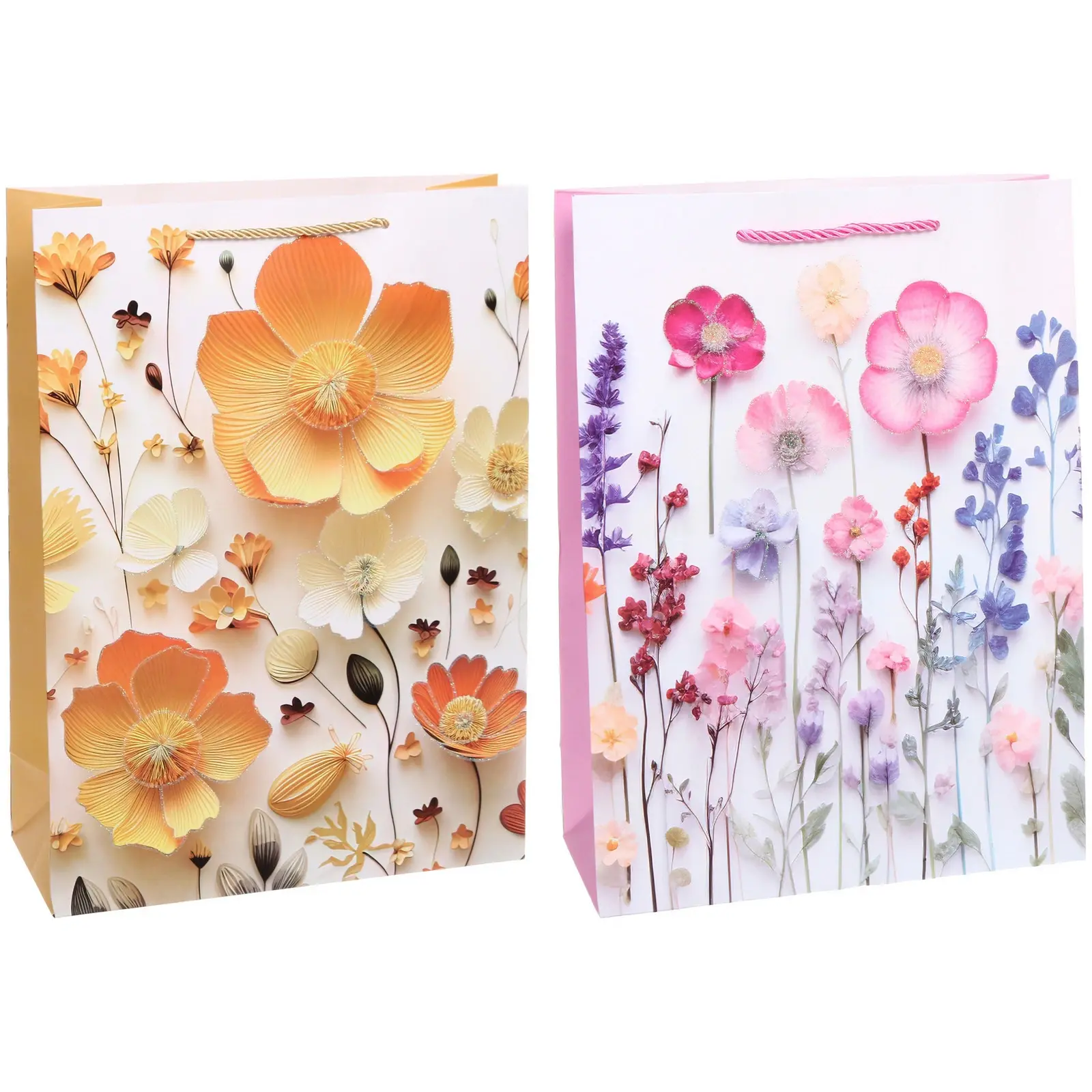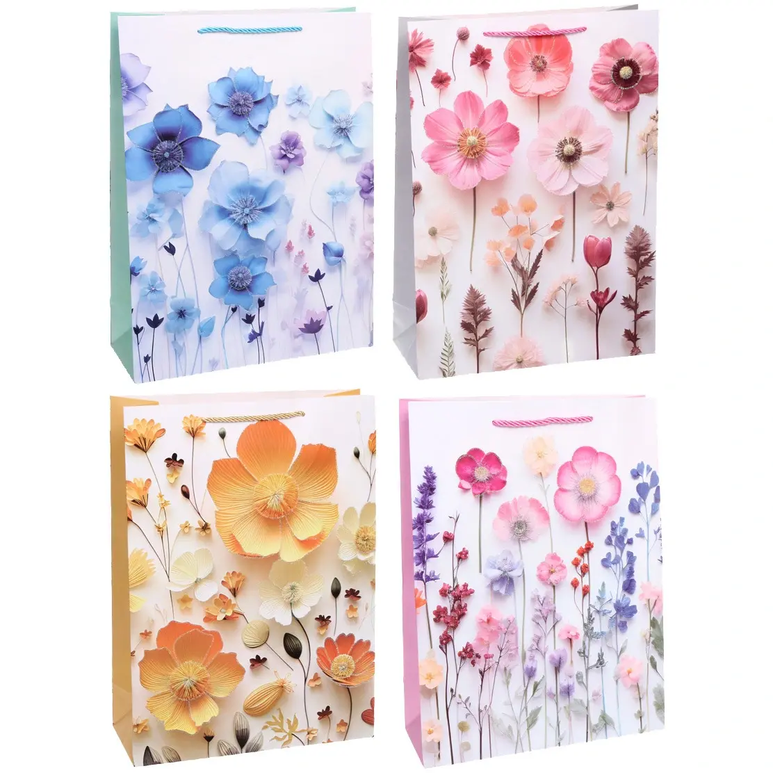 Главное достоинство этого пакета — его уникальный дизайн. Украшенный объемными 3D-цветами и растительными элементами, он выглядит как настоящее произведение искусства. Каждый цветок выполнен с потрясающей детализацией: лепестки имеют разную форму, текстуру и объем, создавая ощущение живости и свежести. Благодаря такому декору, пакет выглядит дорого и изысканно, подчеркивая ценность вашего подарка.