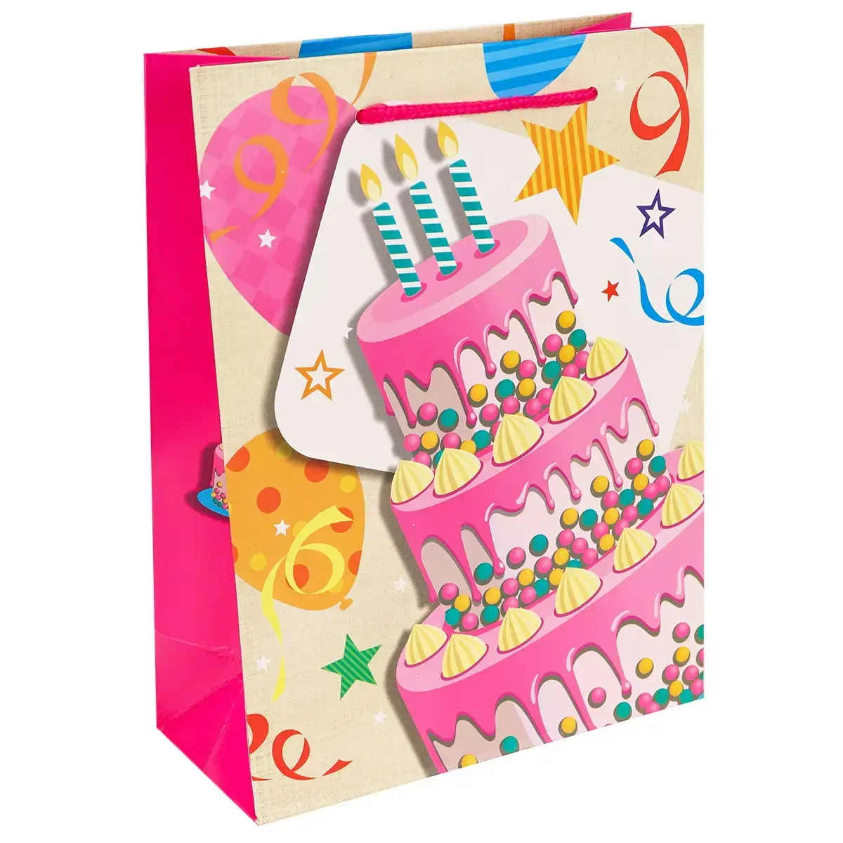 Пакет подарочный 'Яркий тортик', 26х32х10 см, розовый/бежевый, для дней рождения