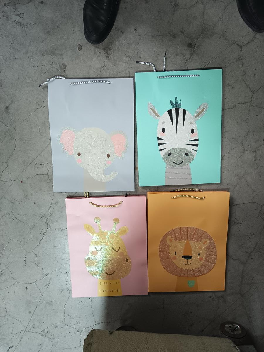 Подарочный пакет с милыми животными создан для тех, кто ценит внимание к деталям. Яркие иллюстрации в мультяшном стиле и мерцающий глиттер превратят обычный презент в трогательный сюрприз.
