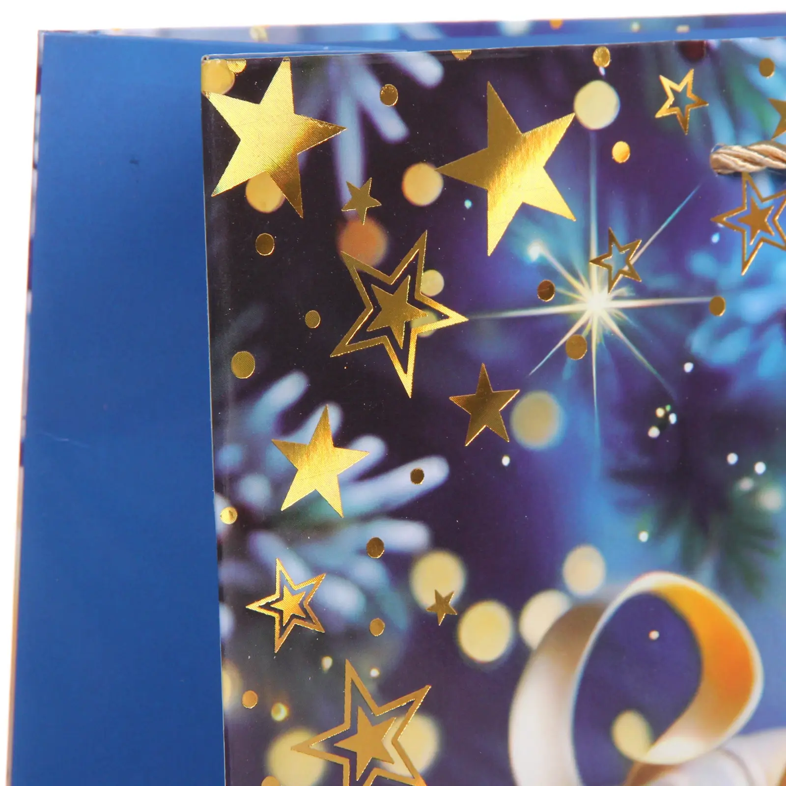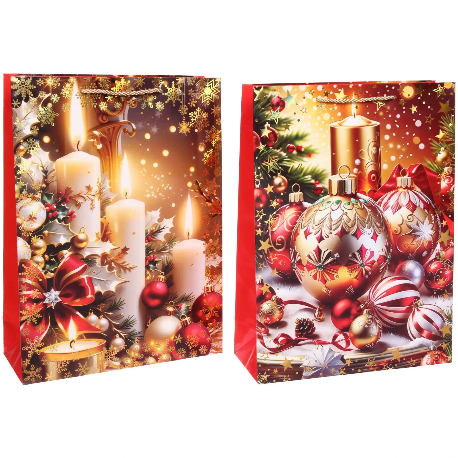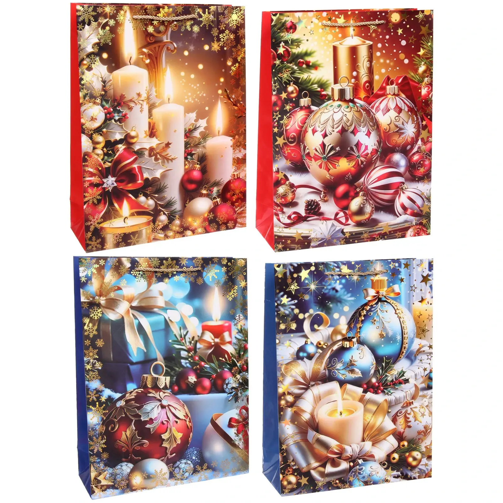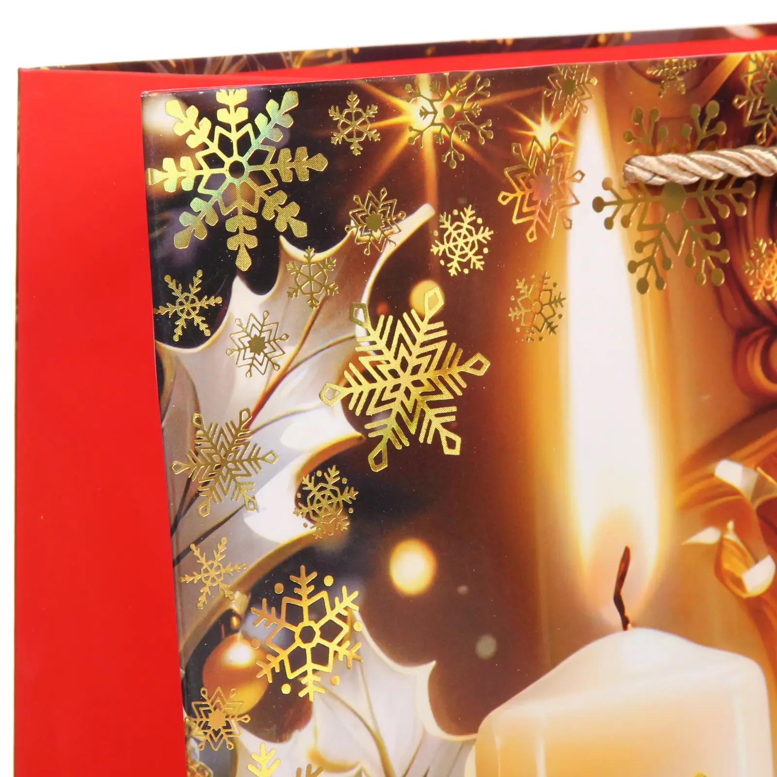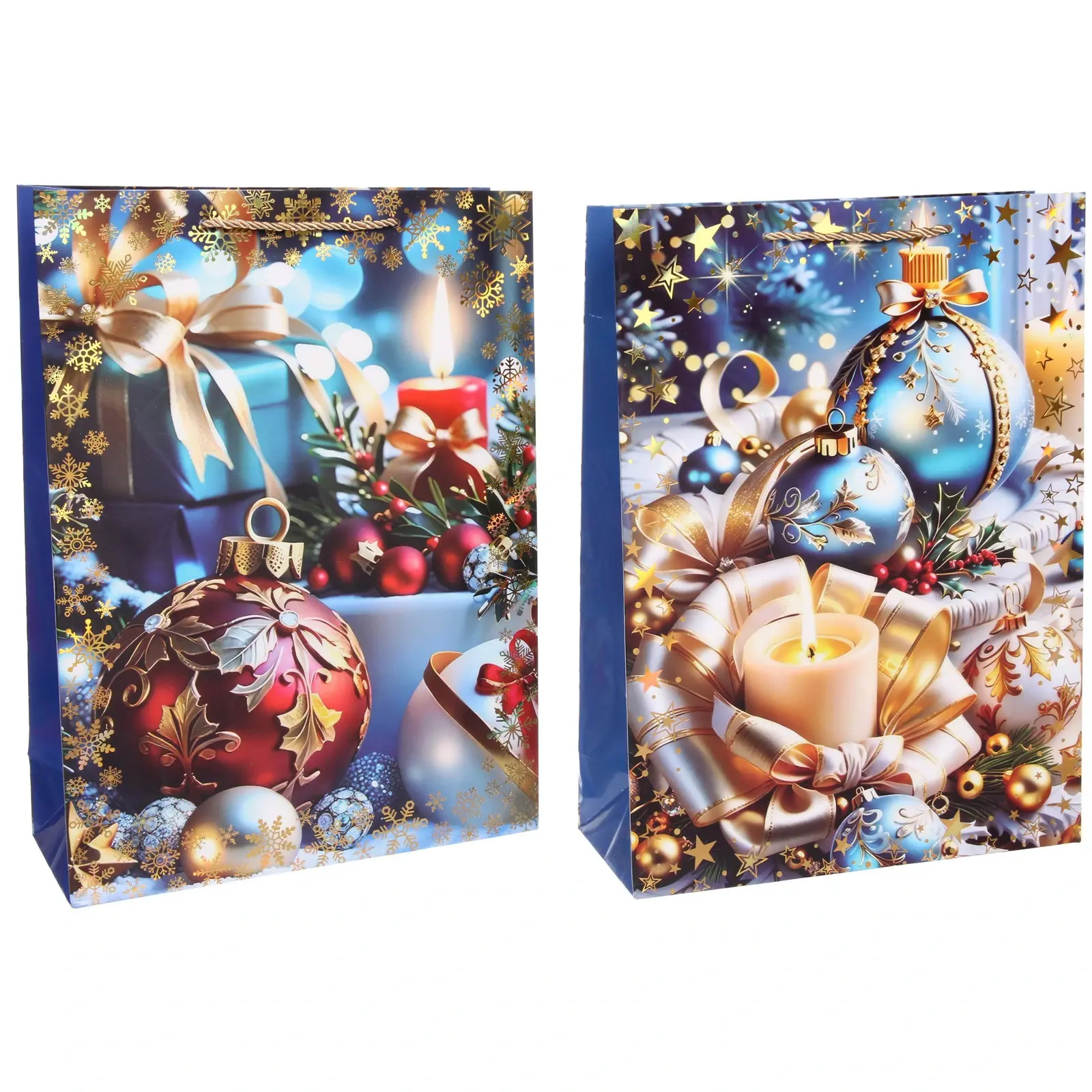 Пакет имеет размеры 31х42х12 см и выполнен из бумаги, что делает его легким и удобным в использовании. Он оформлен в праздничном стиле с изображениями новогодних свечей, шаров и других элементов, что делает его идеальным для зимних праздников. Не упустите возможность сделать ваши подарки еще более особенными с помощью этого стильного пакета!