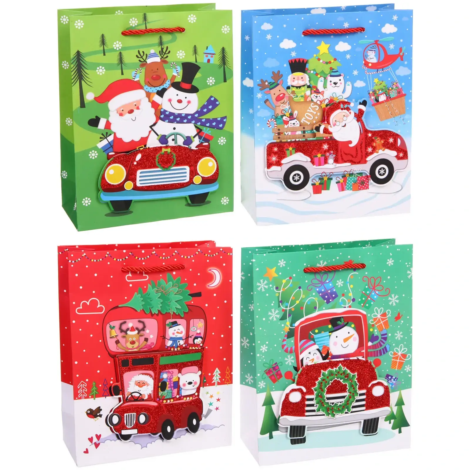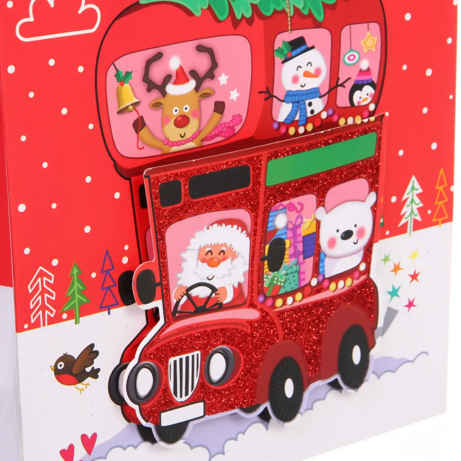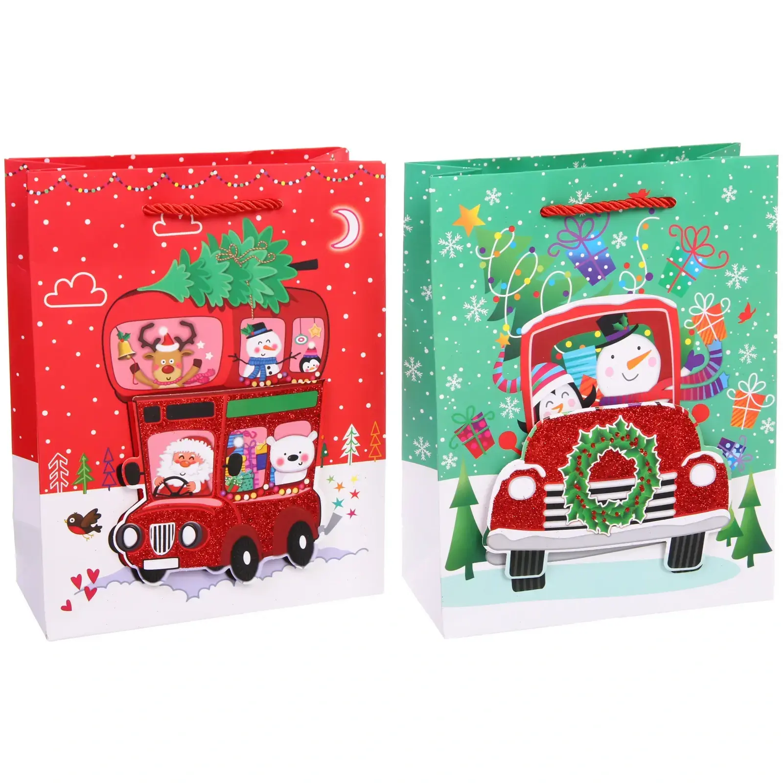 Создайте атмосферу праздника с подарочным пакетом «Зимнее путешествие». Этот стильный пакет станет идеальным решением для упаковки подарков на Новый год и Рождество. Яркие цвета и праздничные иллюстрации с изображением Санты, снеговиков и оленей создают радостное настроение и подчеркивают важность момента дарения.