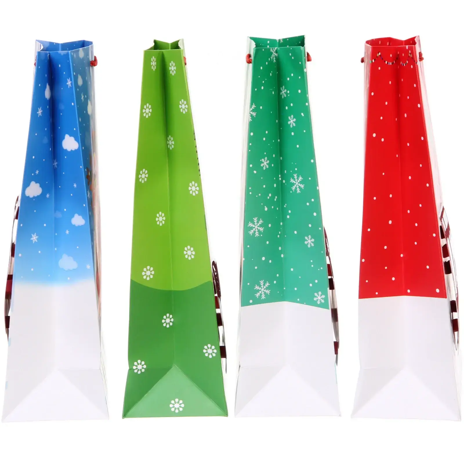 Пакет отлично подходит для упаковки новогодних и рождественских подарков. Благодаря миксу дизайнов вы сможете выбрать наиболее подходящий вариант для конкретного получателя: с изображениями Деда Мороза, снеговиков, оленей или праздничных машин.