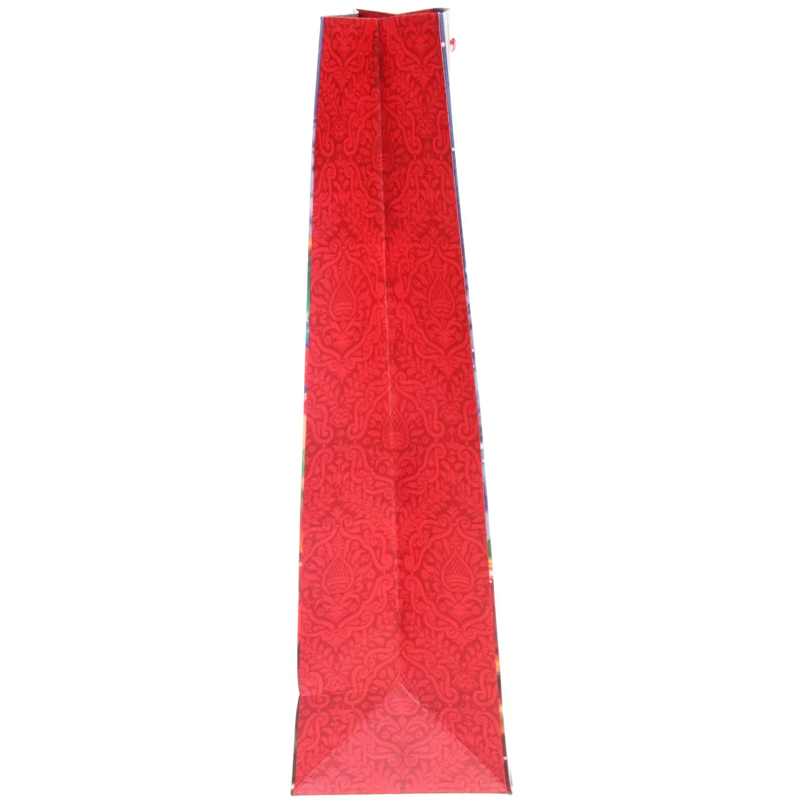 Пакет имеет размеры 31х42х12 см, что делает его подходящим для упаковки различных подарков, от игрушек до книг. Он выполнен из качественной бумаги, что обеспечивает надежность и долговечность. Красные ручки удобны для переноски, а яркие цвета привлекают внимание и создают праздничное настроение.