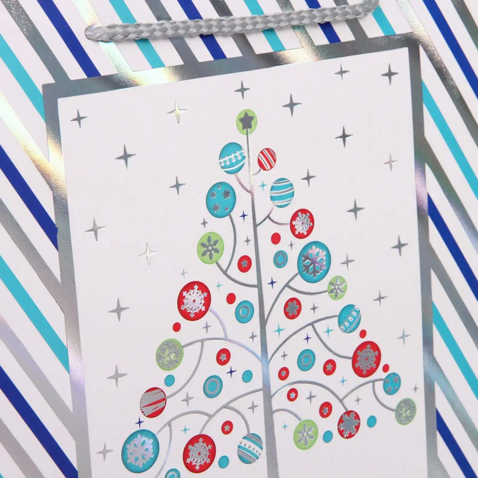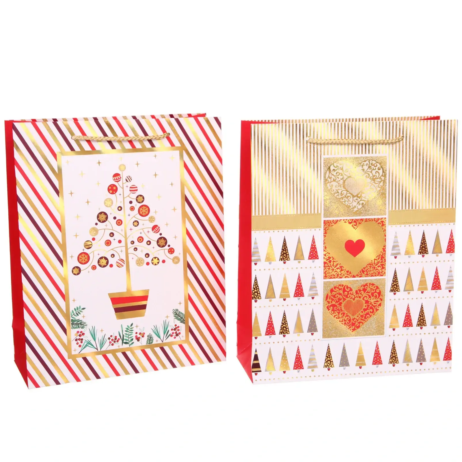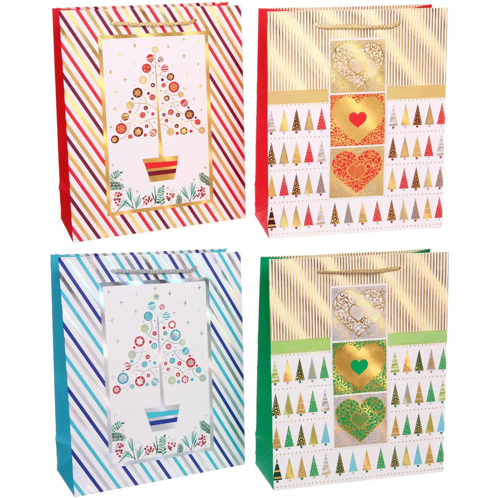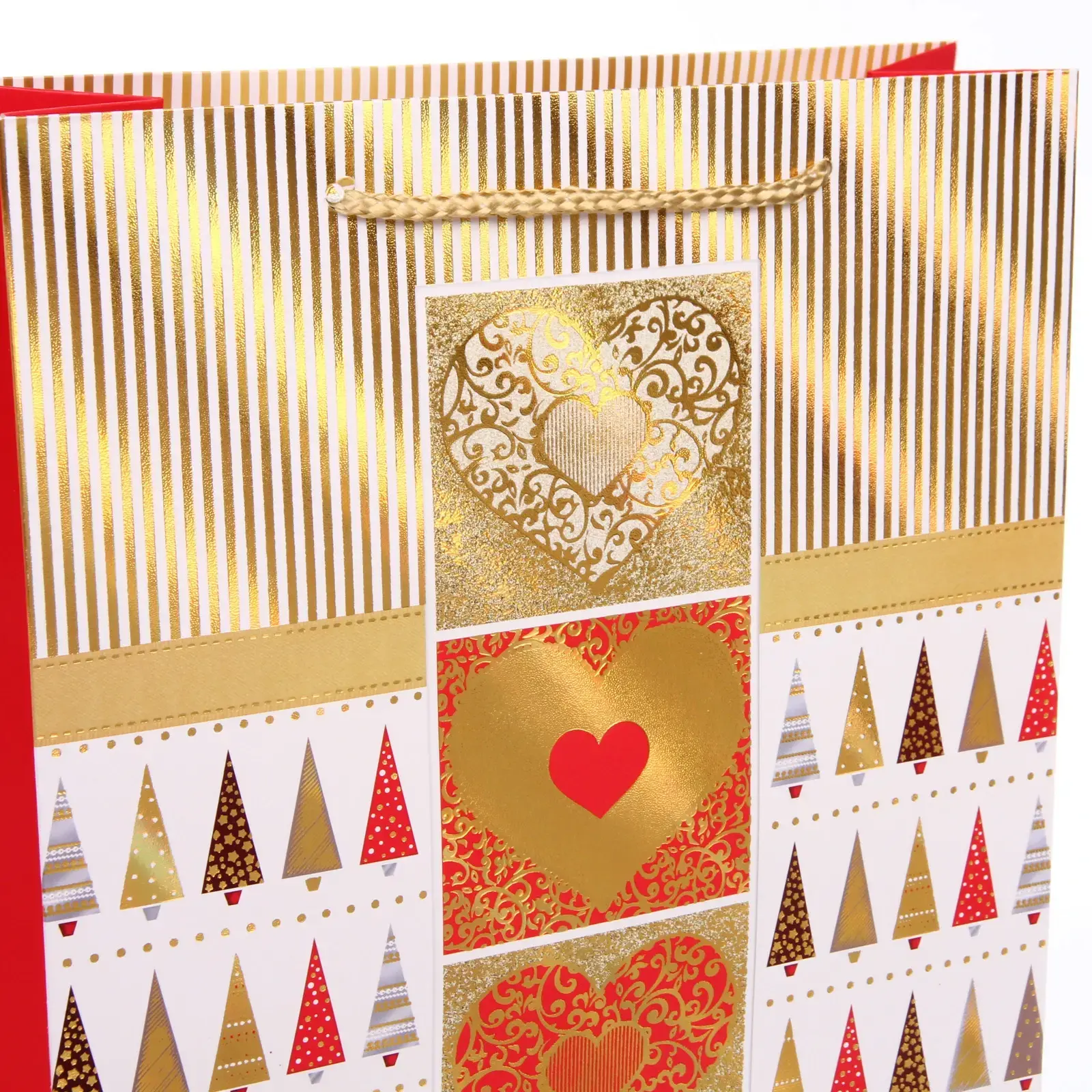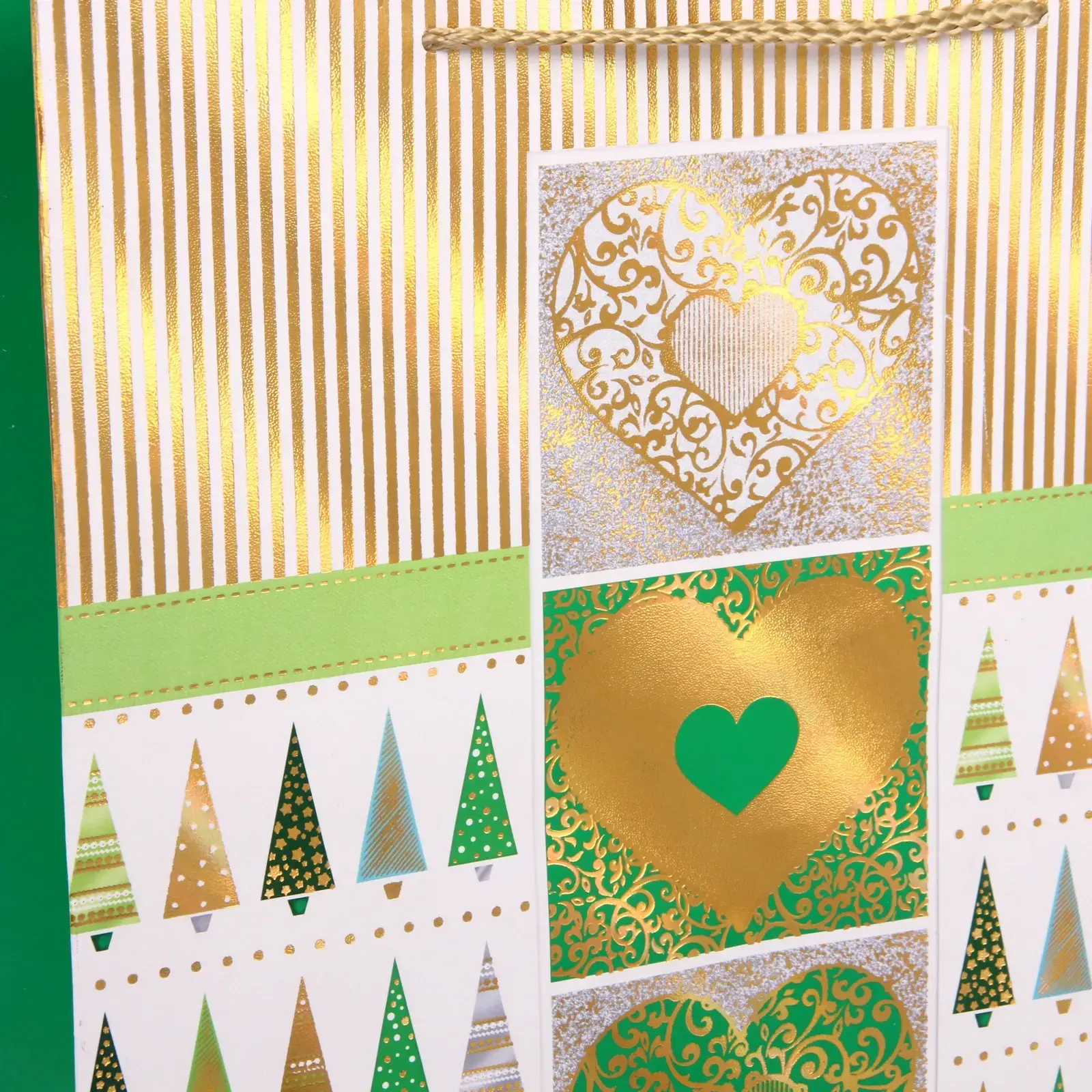 Пакет выполнен из качественной бумаги, что обеспечивает его прочность и долговечность. Яркие цвета и праздничные узоры, такие как новогодние деревья и сердечки, создают радостное настроение и подчеркивают важность момента. Удобные ручки позволяют легко переносить пакет, а глянцевая отделка придает ему стильный вид.