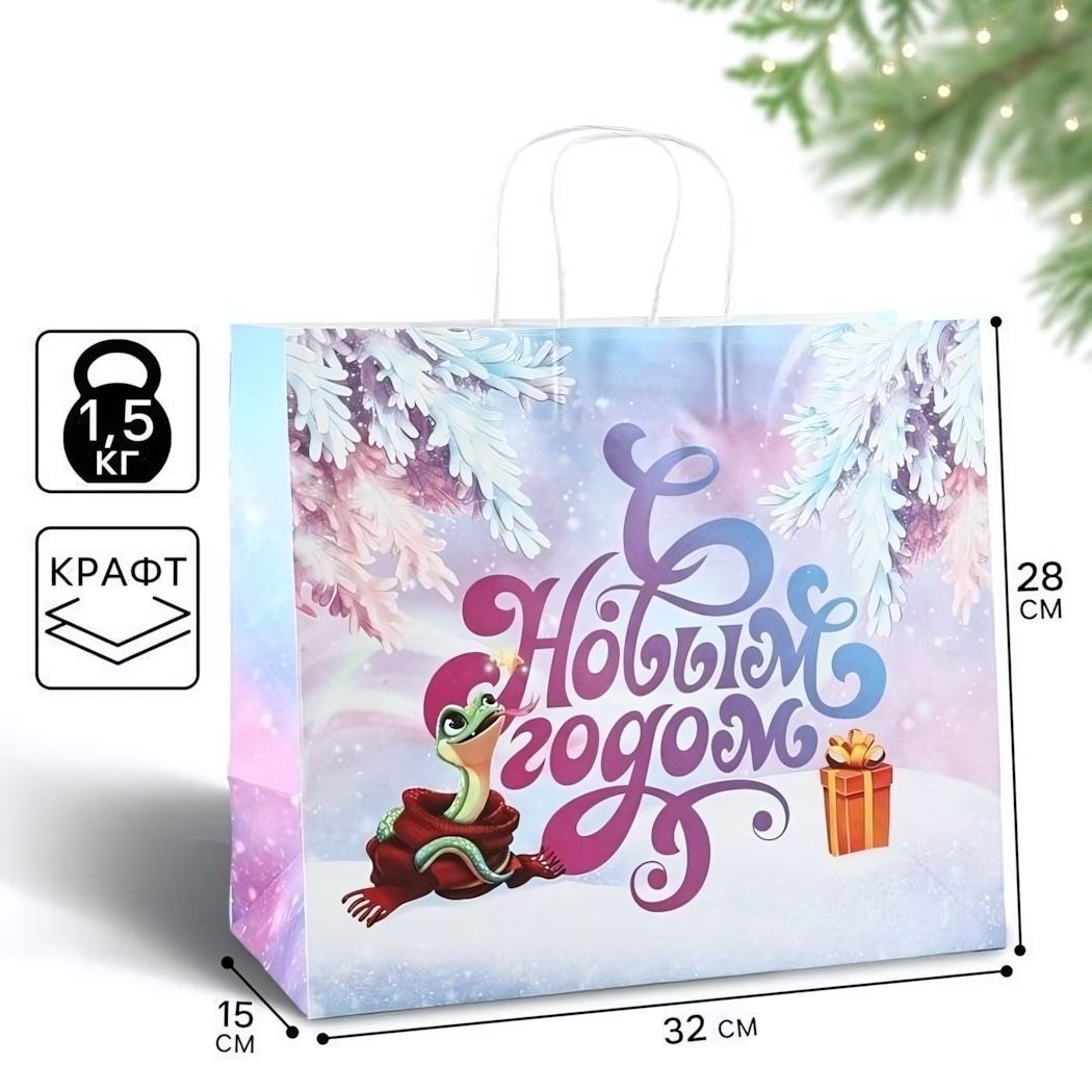 Пакет подарочный «Змея 2025», крафт белый, 32×28×15см, прочный, с ручками