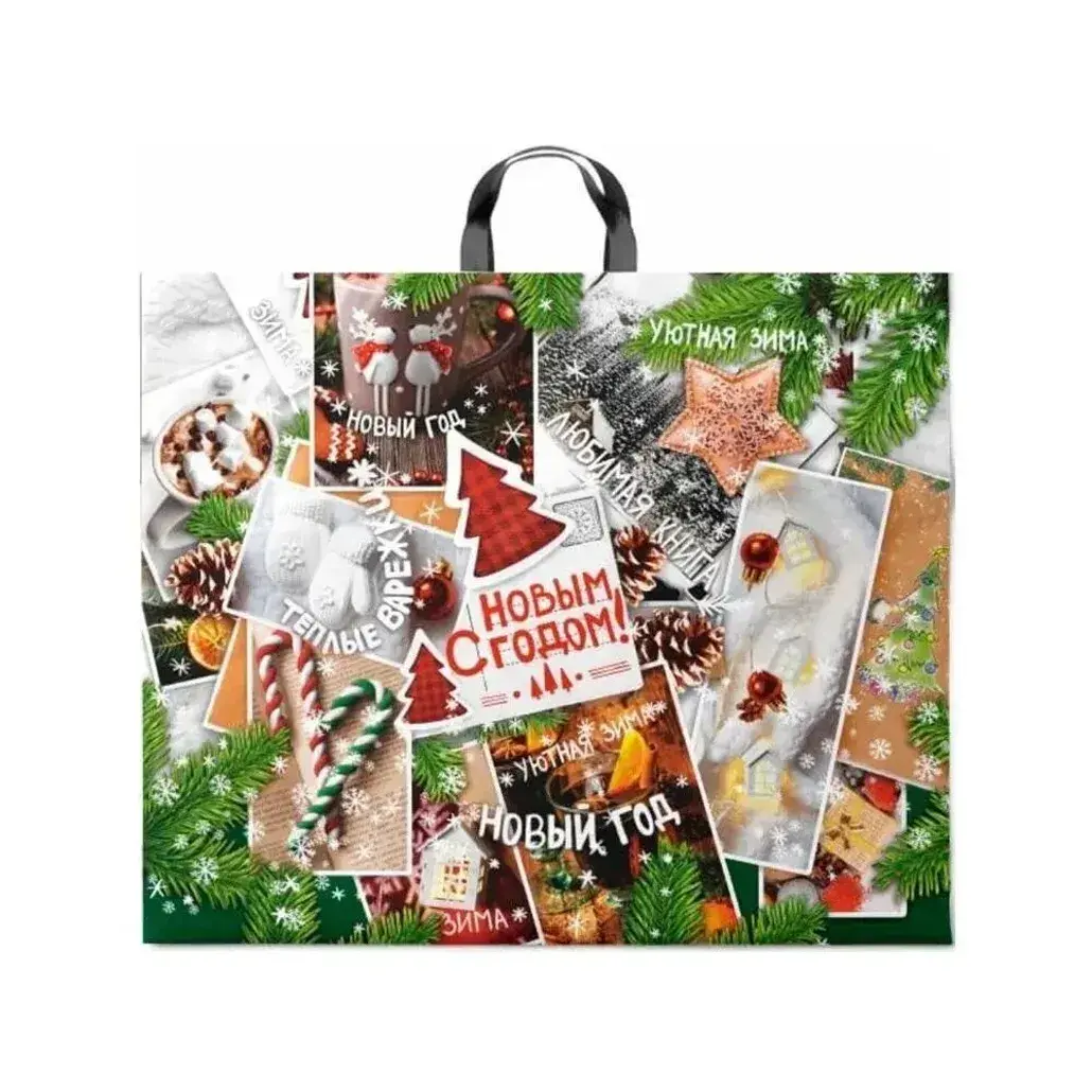 Создайте праздничное настроение с первых минут встречи! Новогодний пакет с петлевыми ручками станет идеальным решением для подарков и покупок в предпраздничные дни.