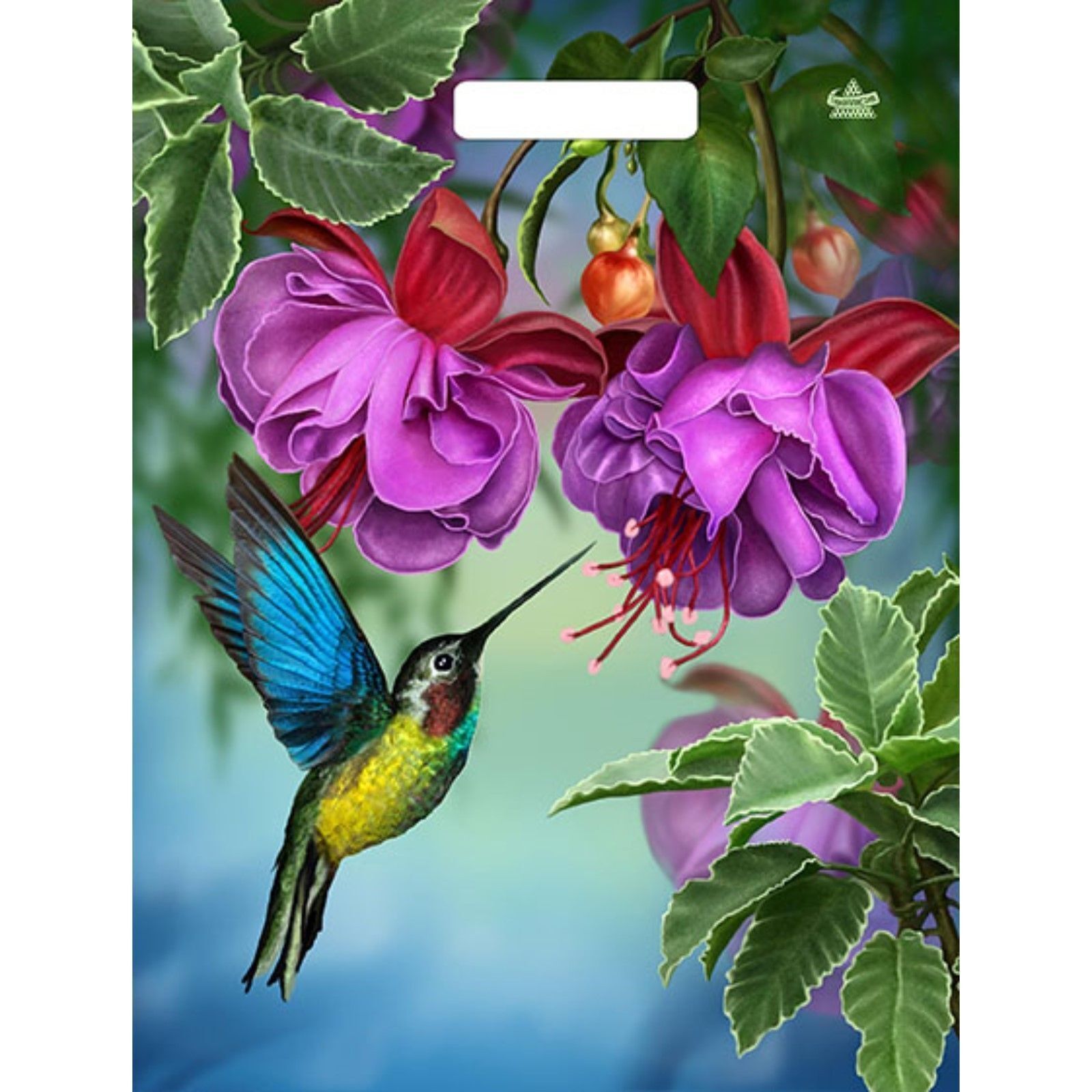 Этот пакет идеально подходит для хранения и презентации подарков, сувениров и мелких товаров. Благодаря яркому изображению колибри в цветах, он привлекает внимание и создает праздничное настроение.