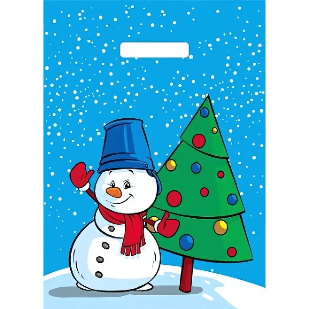 Размер пакета составляет 40х29 см, что позволяет упаковать в него подарки различного размера. Пакет украшен изображениями снеговика и елки на фоне зимнего пейзажа, что создает атмосферу праздника. Не упустите возможность сделать ваши подарки особенными с помощью этого замечательного пакета!