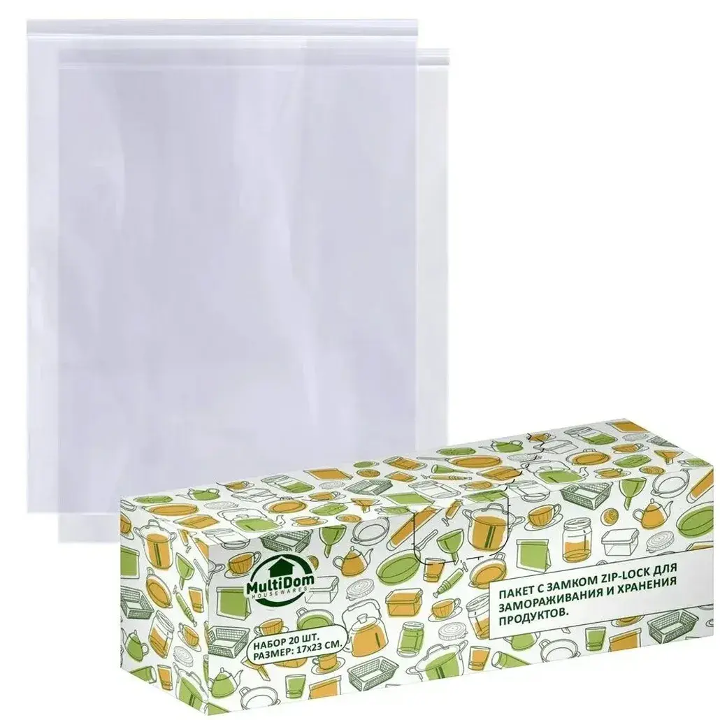 Пакеты с замком zip-lock 1.3л, набор 20 шт, 17х23см, для заморозки и хранения