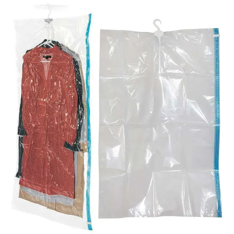 Встроенная вешалка позволяет хранить деликатные платья и костюмы без образования заломов. Прочный прозрачный материал (толщиной 0.07 мм) обеспечивает визуальный контроль содержимого и защиту от случайных повреждений. Идеально подходит для гардеробных систем, балконного хранения и путешествий.