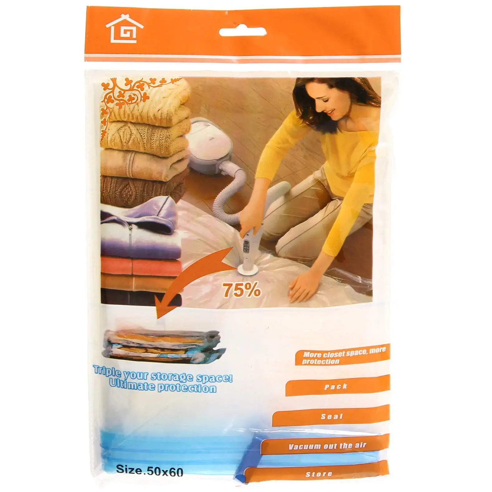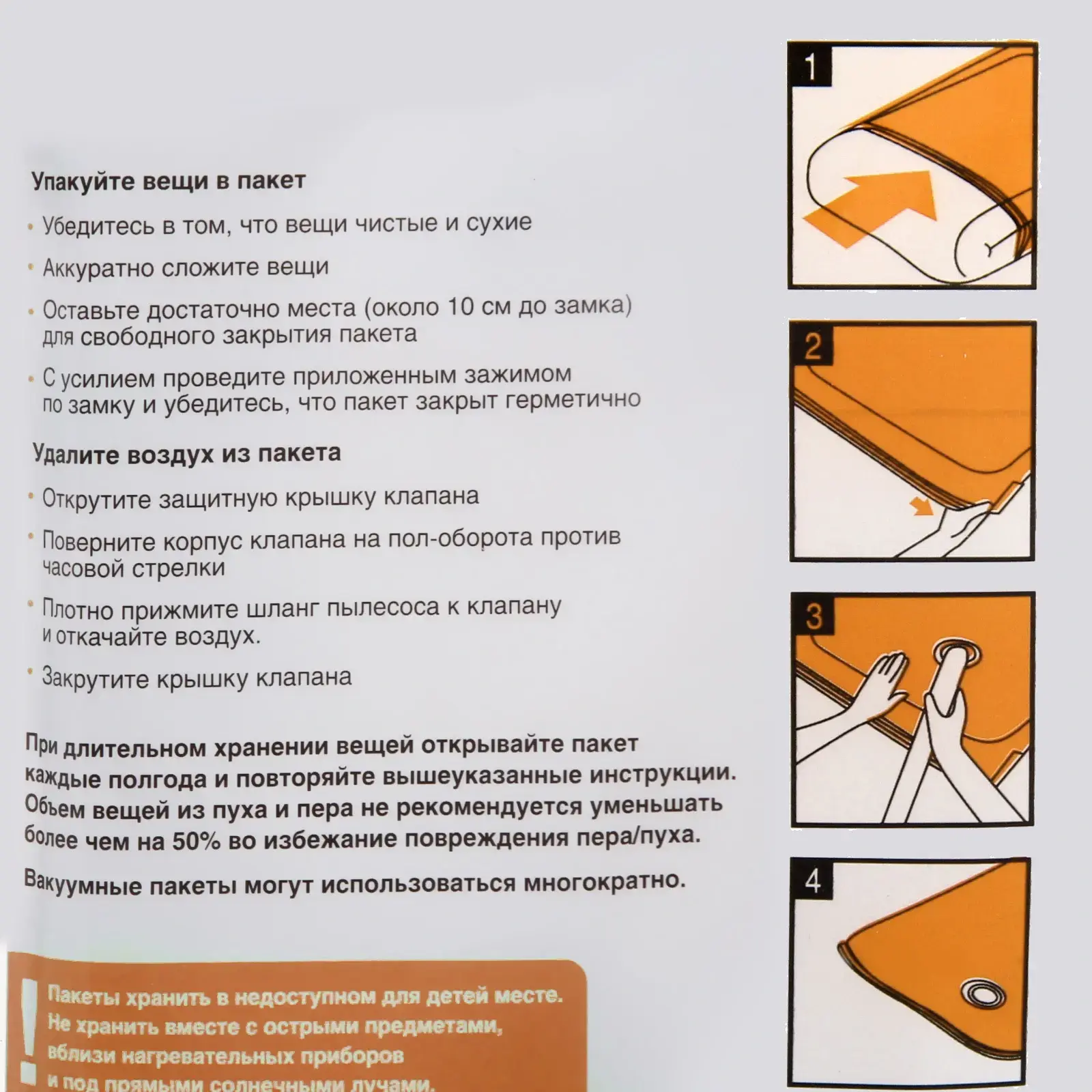 Вакуумный пакет размером 50х60 см станет вашим надежным помощником в борьбе за свободное место. Уменьшите объем хранения до 75% и забудьте о беспорядке.