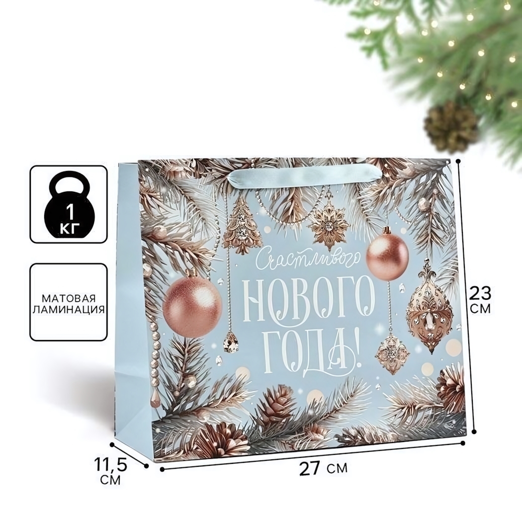 Пакет новогодний "Счастливого Нового года", 23×27×11,5см, ламинированный, светло-голубой