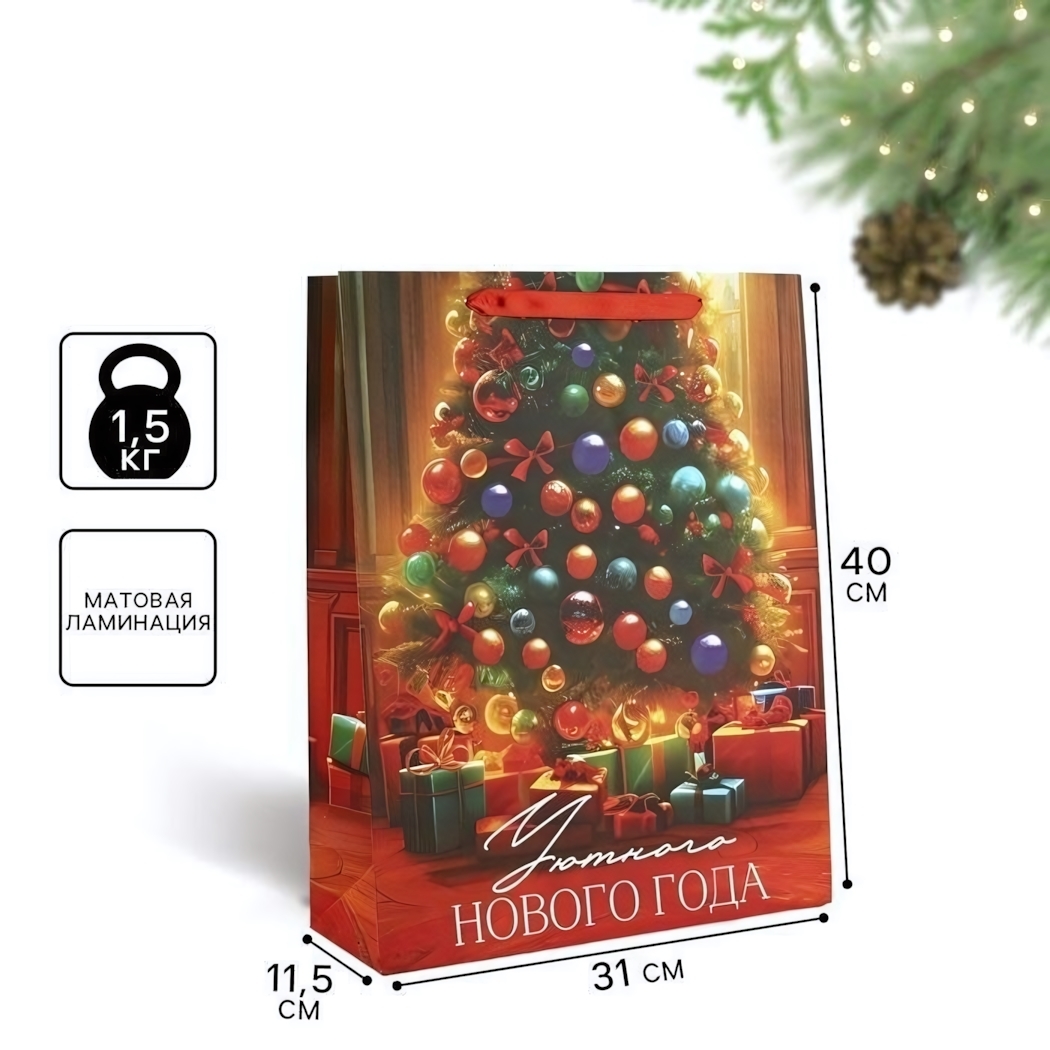 Пакет новогодний "Уютный Новый год. Ёлка", ламинированный, 31×40×11,5см
