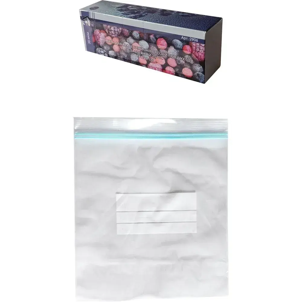 Пакеты для заморозки с zip-lock 20шт, 22х19см, полиэтилен прозрачный, маркировочная зона