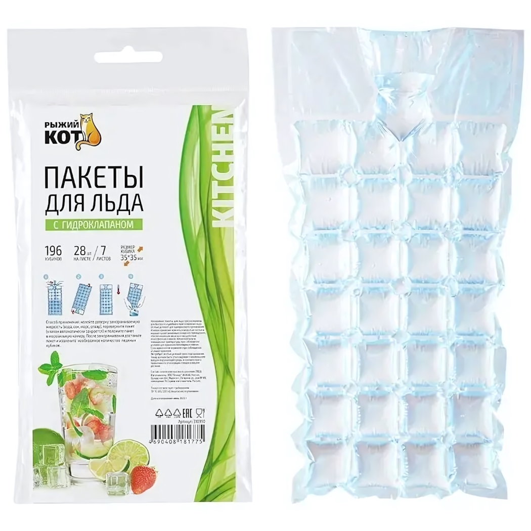 Пакеты для льда "Рыжий кот", гидроклапан, 196 ячеек, 28 шт, ПВД