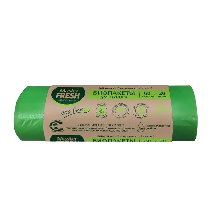Сделайте выбор в пользу заботы о природе без ущерба для практичности! Биопакеты Master FRESH БИО сочетают повышенную прочность с экологичным составом, который разлагается в 3 раза быстрее обычного пластика.