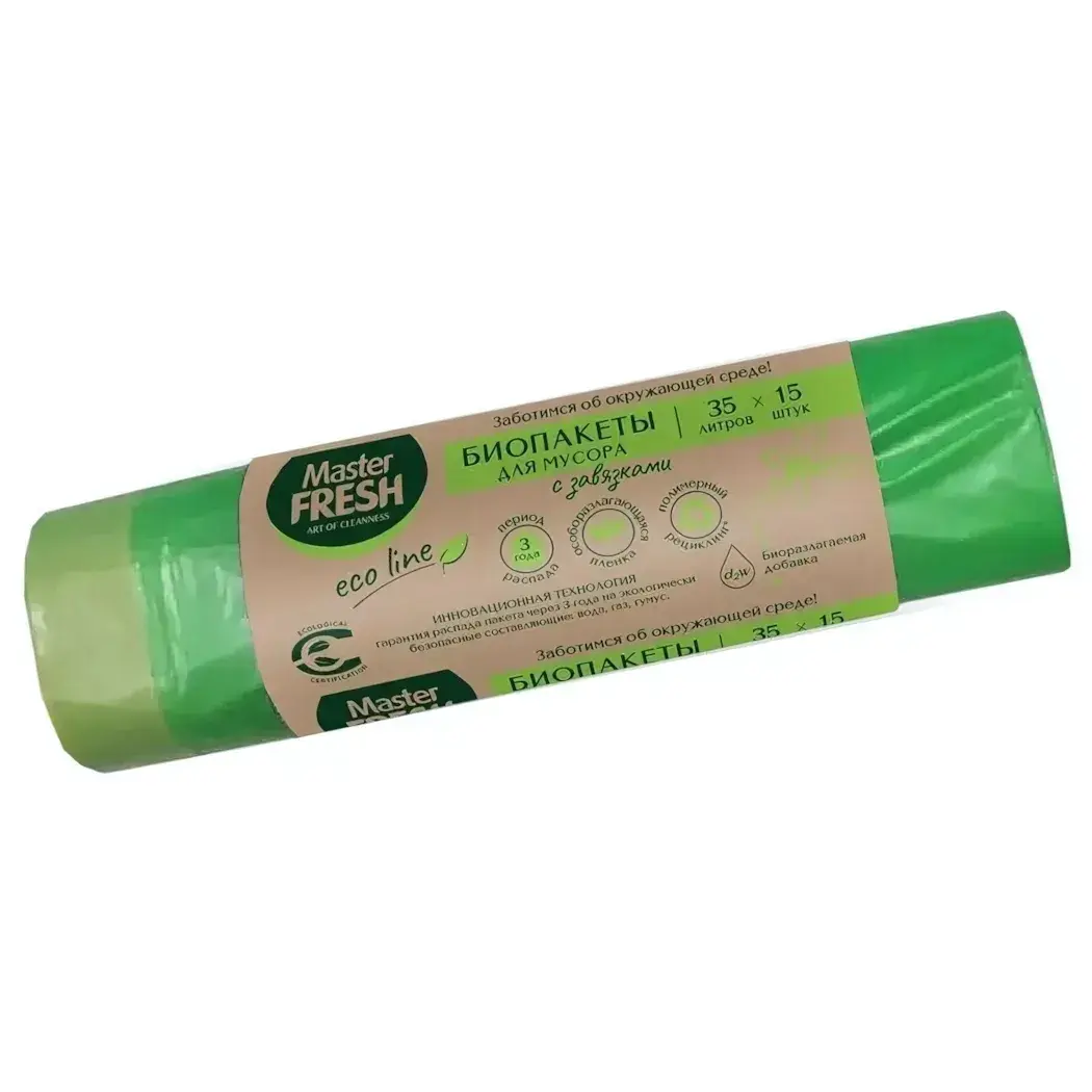 Пакеты для мусора биоразлагаемые с завязками, 35л, 15шт, цвет салатовый, Master FRESH