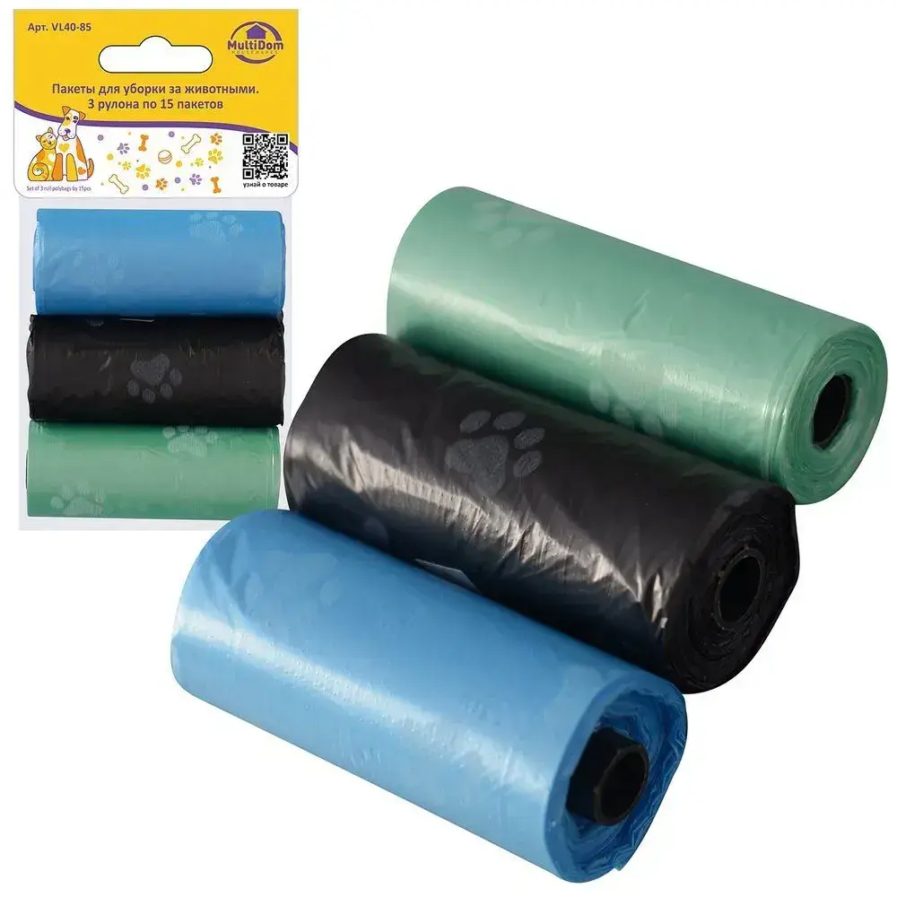 Пакеты для уборки за животными, 3 рулона по 15 шт, 45 штук, цвета в ассортименте