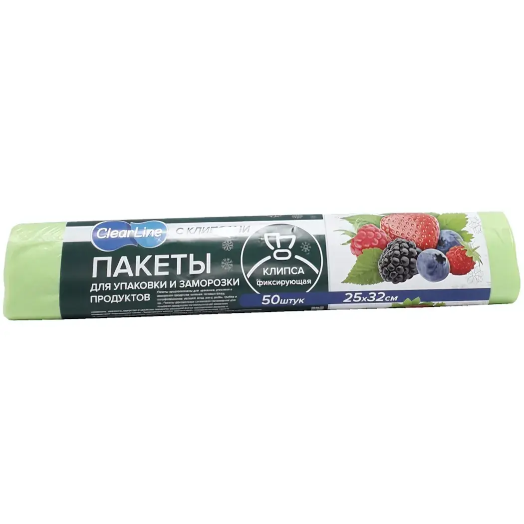 Пакеты для заморозки «Clear Line», 50шт 25х32см, зеленые, с клипсами, герметичные