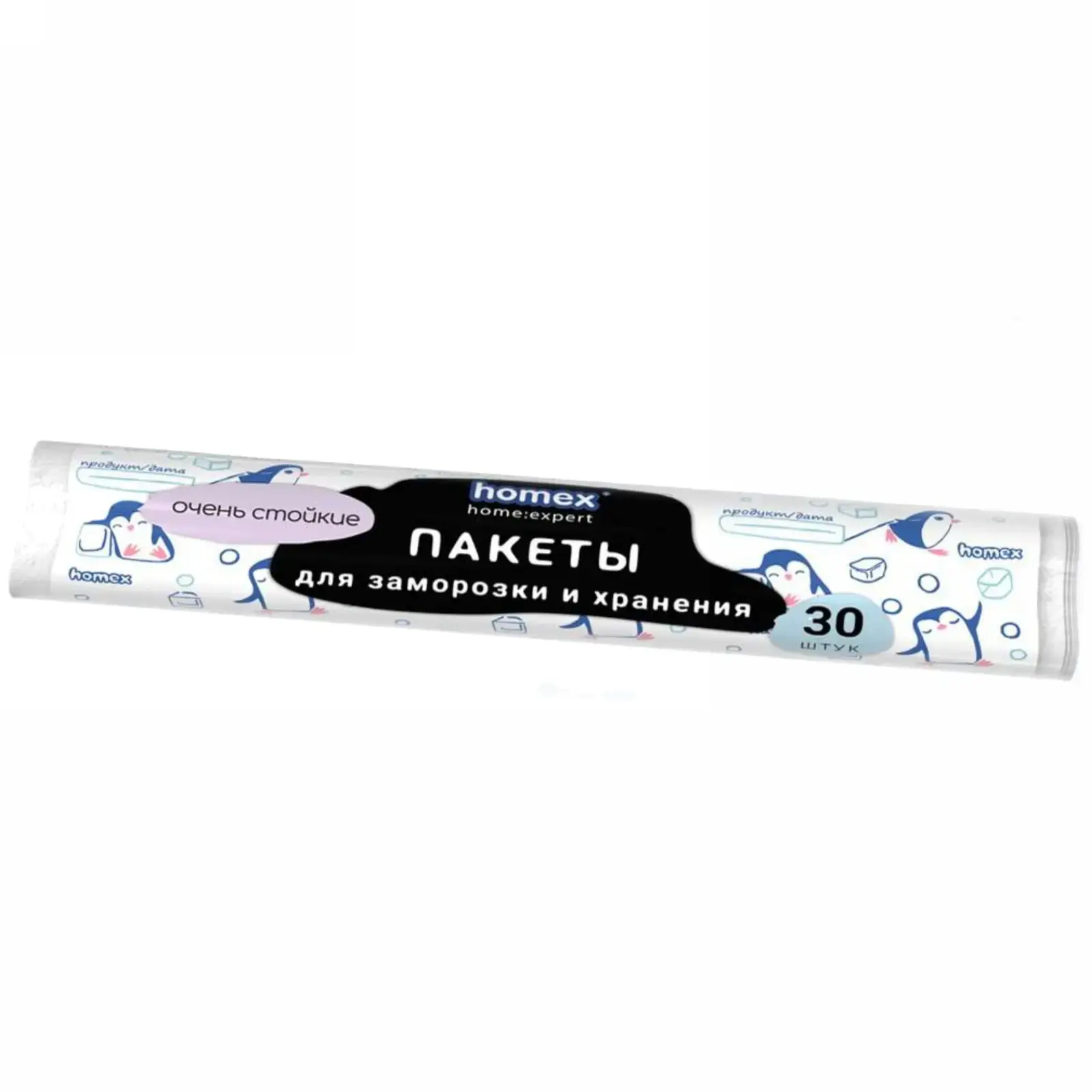 В упаковке содержится 30 пакетов, что делает их отличным выбором для регулярного использования. Размеры пакетов не указаны, но они подходят для большинства стандартных нужд в хранении. Пакеты выполнены в белом цвете с изображениями пингвинов, что добавляет элемент веселья на вашу кухню.