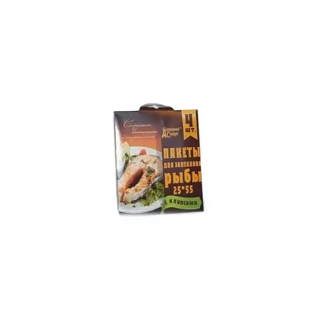 Изготовлены из высококачественного термостойкого материала, который выдерживает температуру до 220°C. В наборе 4 пакета с удобными клипсами для надежного закрытия. Размер 25х50 см идеально подходит для приготовления как целой рыбы, так и филе.