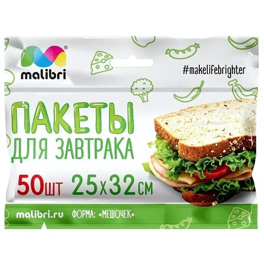 Пакеты для завтрака Malibri — это идеальное решение для хранения и упаковки ваших любимых бутербродов и сэндвичей. Благодаря своей герметичности, они сохраняют свежесть продуктов на длительное время, что делает их незаменимыми для завтраков на ходу или пикников. Эти пакеты обеспечивают надежную защиту от микроорганизмов, что особенно важно для здоровья вашей семьи.