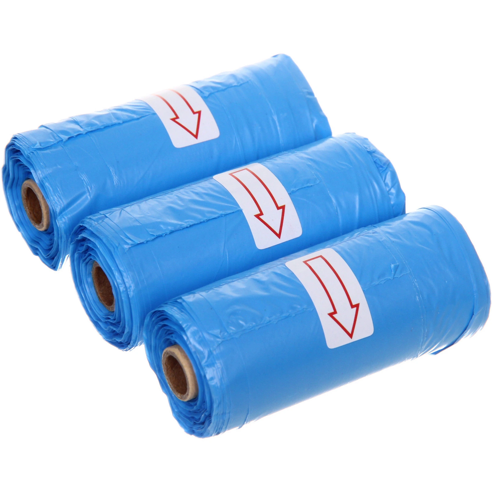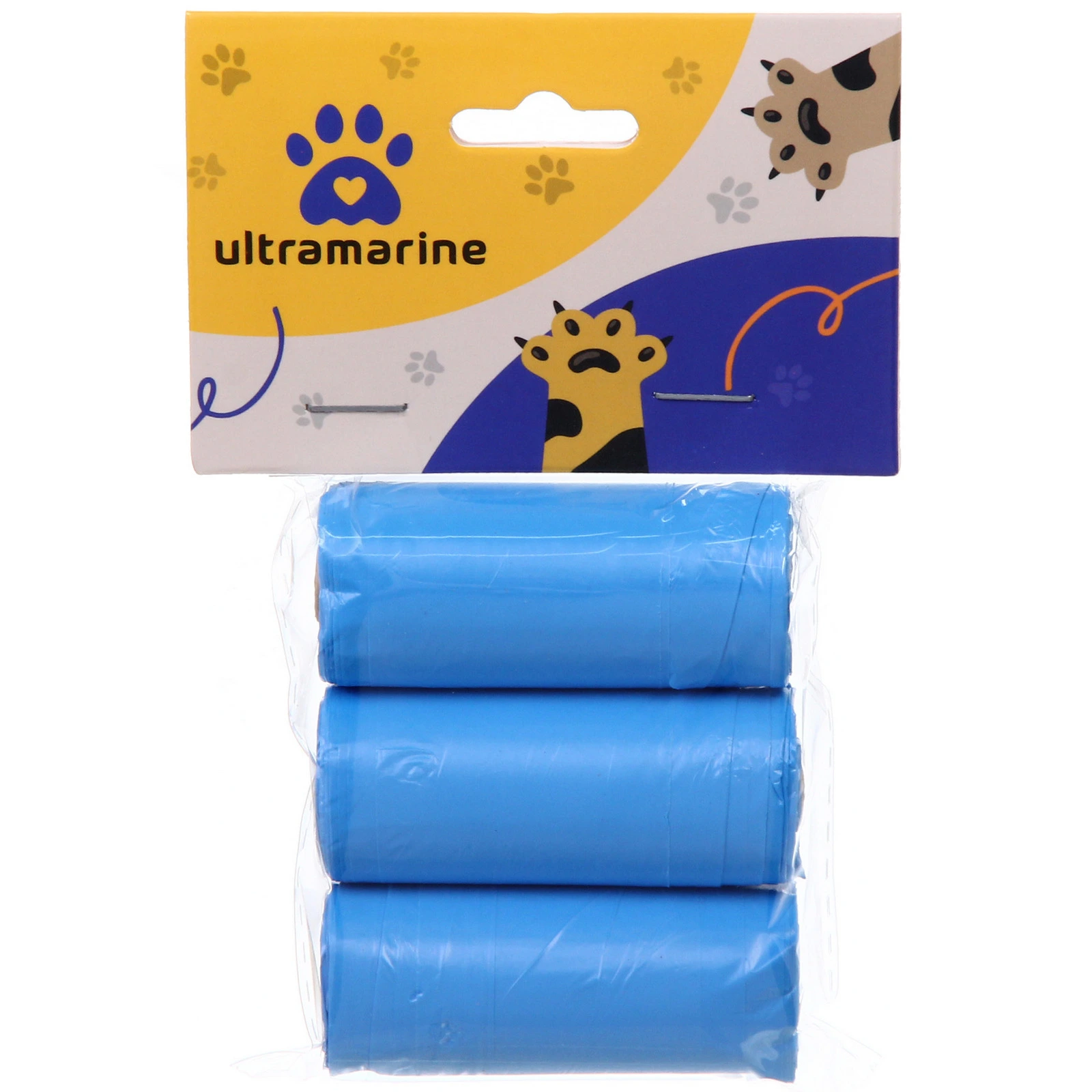 Пакеты биоразлагаемые для уборки за собакой, набор 3 рулона по 15шт, голубые