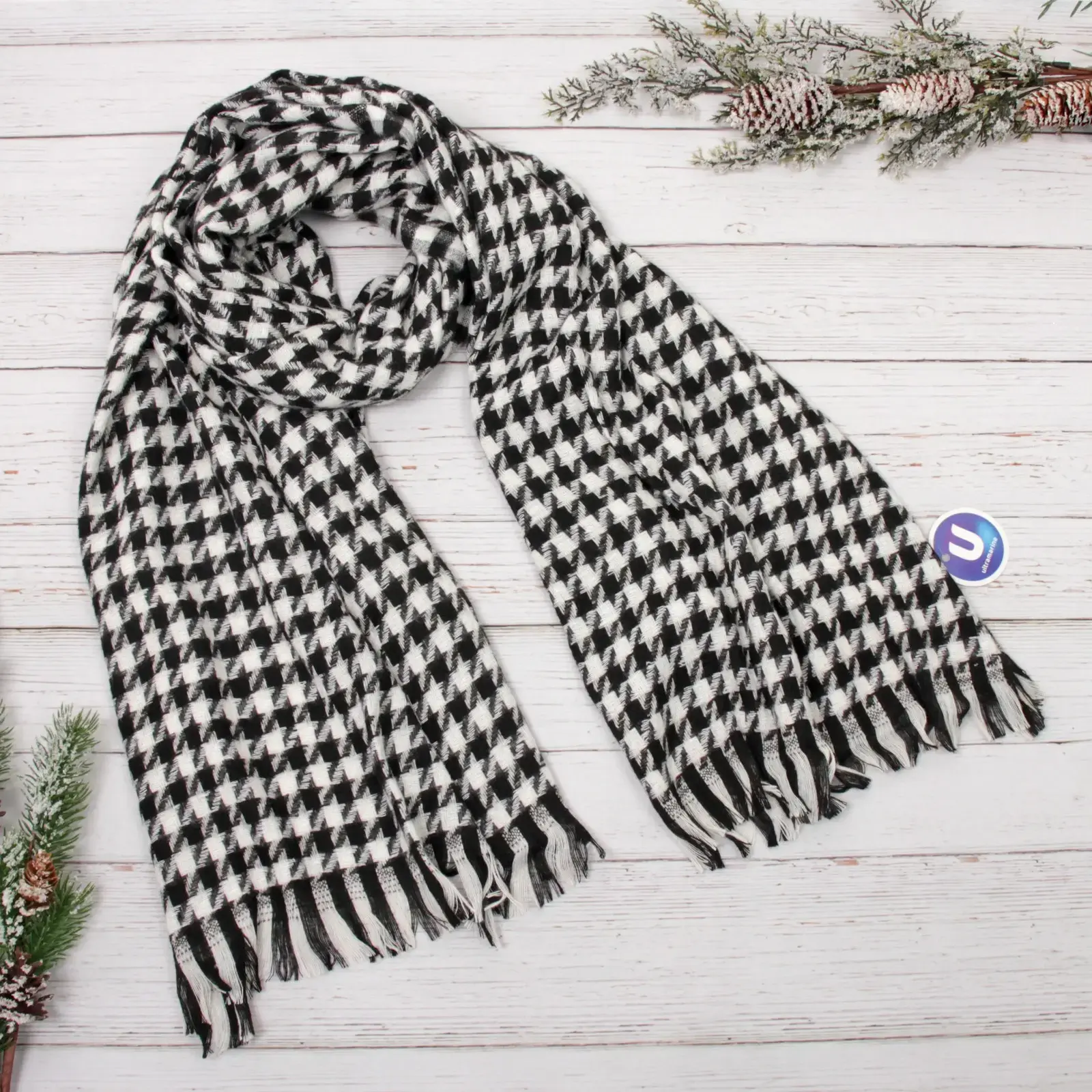 Палантин-шарф «ZIMA» — это идеальный аксессуар для женщин, который сочетает в себе стиль и функциональность. Он не только согревает в ненастную погоду, но и придаёт вашему образу налет элегантности и романтичности. Благодаря своему универсальному черно-белому цвету и классическому узору в гусиную лапку, этот палантин легко комбинируется с различными нарядами, добавляя им изысканности.
